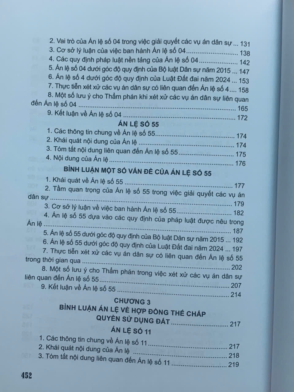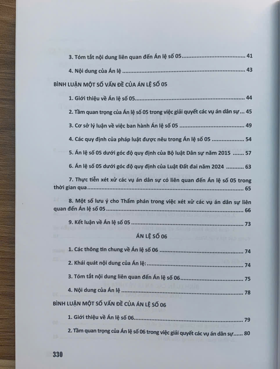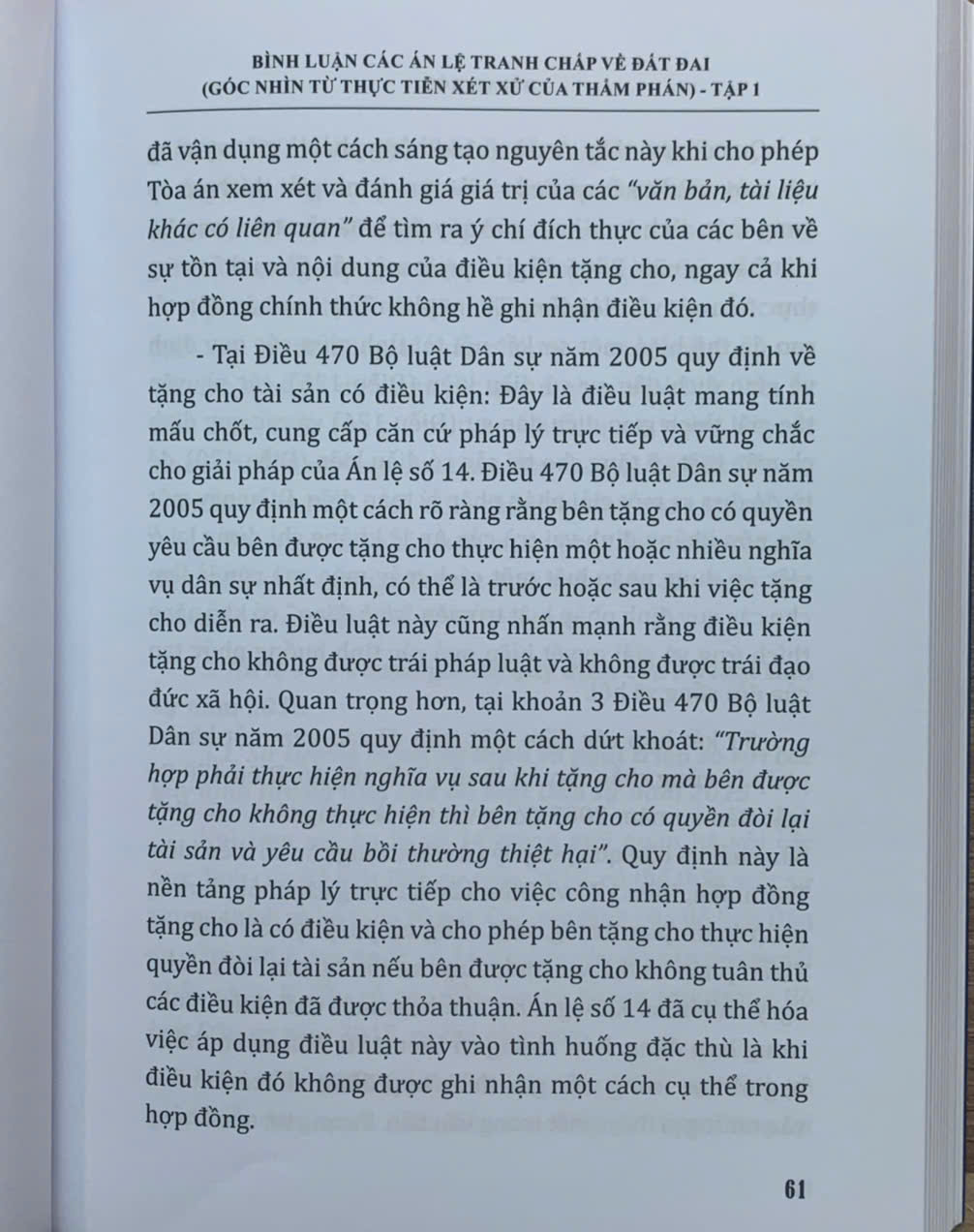 - Tập 1 tập trung vào các án lệ hợp đồng dân sự về đất đai (chuyển nhượng, tặng cho, trao đổi, đặt cọc).