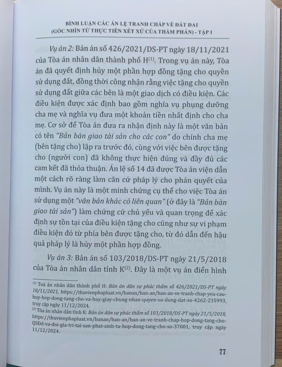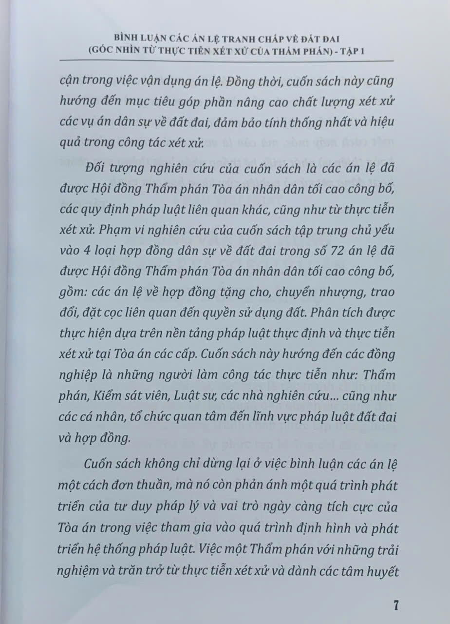 Đây là tài liệu tham khảo hữu ích cho Thẩm phán, Kiểm sát viên, Luật sư, giảng viên, sinh viên luật, cũng như những ai quan tâm đến việc bảo vệ quyền và lợi ích hợp pháp của mình trong tranh chấp đất đai.