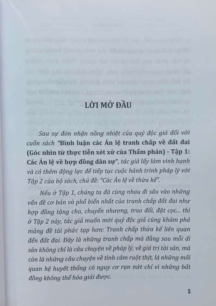 Sau sự đón nhận nồng nhiệt của quý độc giả đối với cuốn sách “Bình luận các Án lệ tranh chấp về đất đai (Góc nhìn từ thực tiễn xét xử của Thẩm phán) – Tập 1: Các Án lệ về hợp đồng dân sự”, tác giả lấy làm vinh hạnh và có thêm động lực để tiếp tục cuộc hành trình pháp lý với Tập 2 của bộ sách, chủ đề: “Các Án lệ về thừa kế”.