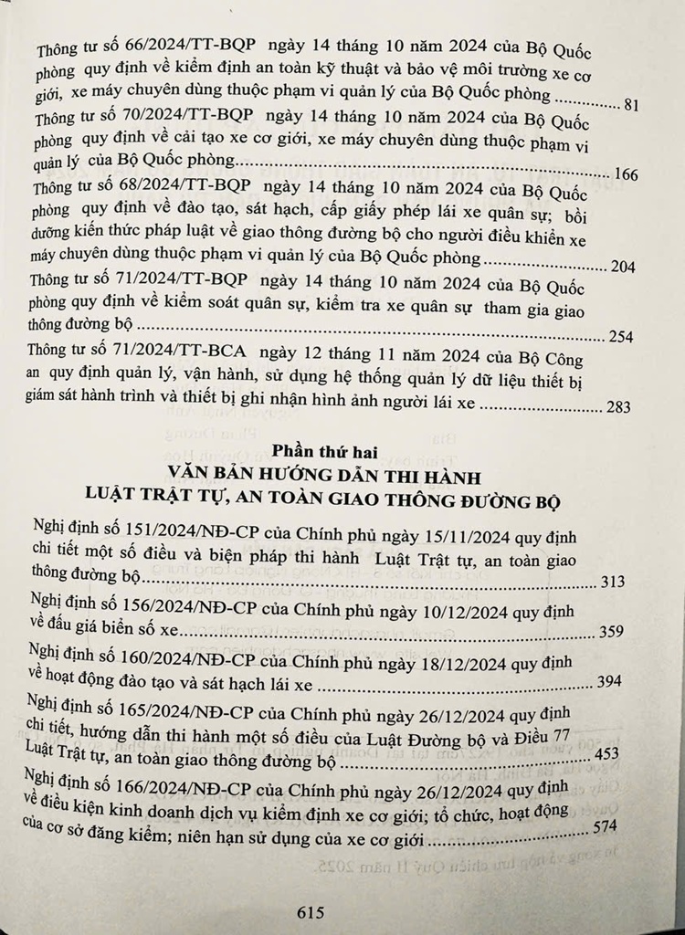 Cuốn sách giúp độc giả dễ dàng tra cứu, áp dụng quy định của Luật Trật tự, an toàn giao thông đường bộ năm 2024, đồng thời tuyên truyền những văn bản hướng dẫn thi hành về Luật Trật tự, an toàn giao thông đường bộ.