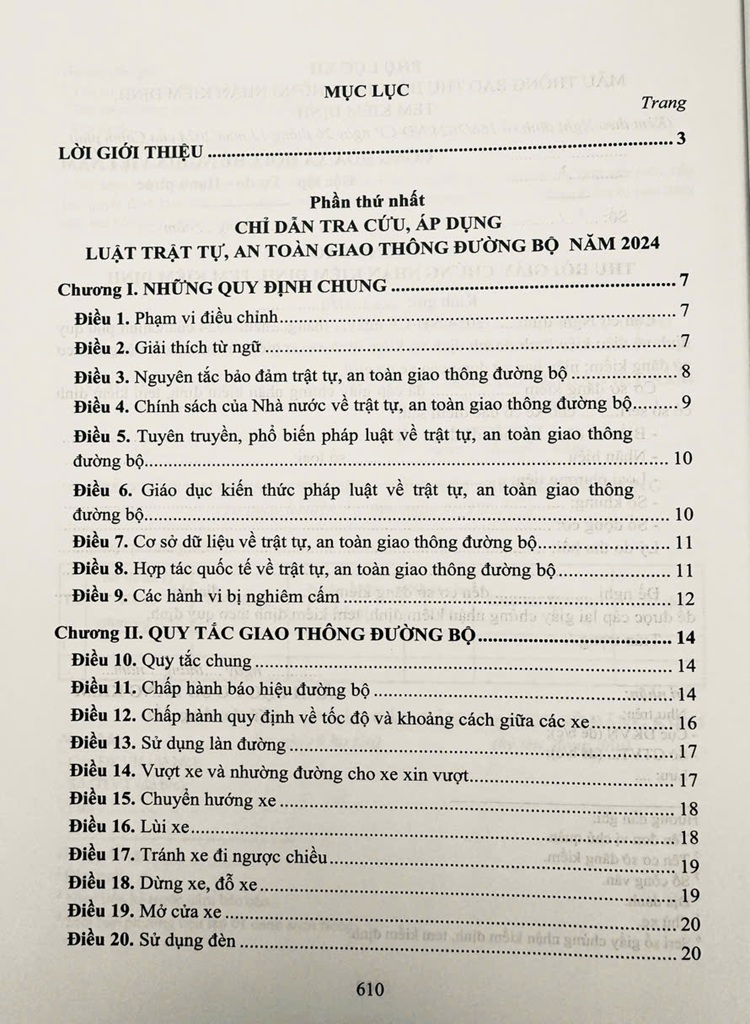 Phần thứ nhất: CHỈ DẪN TRA CỨU, ÁP DỤNG LUẬT TRẬT TỰ, AN TOÀN GIAO THÔNG ĐƯỜNG BỘ NĂM 2024