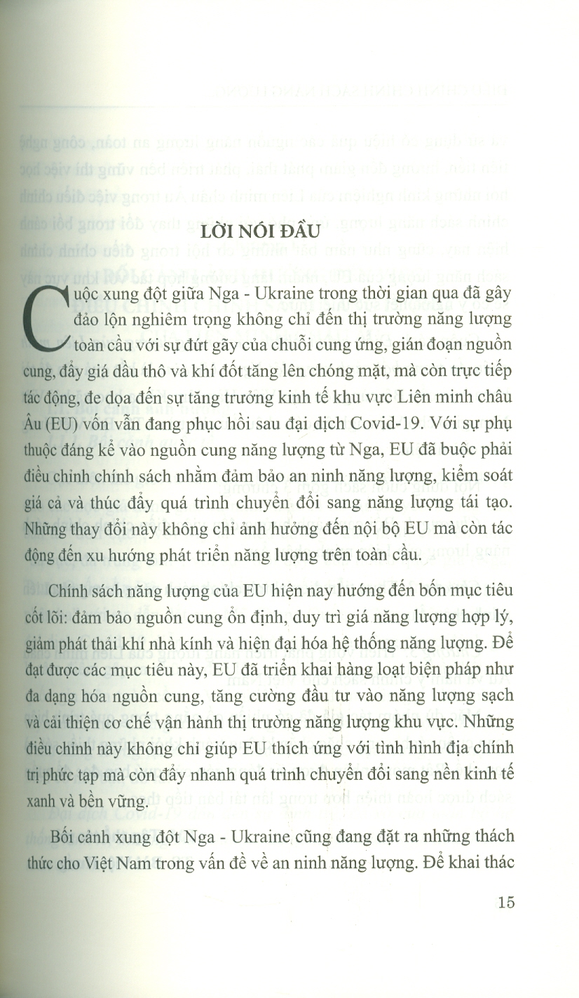 Điều Chỉnh Chính Sách Năng Lượng Của Liên Minh Châu Âu Trong Bối Cảnh Xung Đột Nga - Ukraine (Sách Chuyên Khảo)