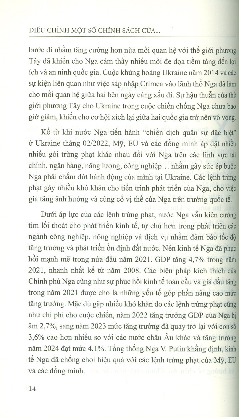 Điều Chỉnh Một Số Chính Sách Của Liên Bang Nga Từ Xung Đột Nga - Ukraine Và Tác Động Đến Quan Hệ Việt Nam - Liên Bang Nga (Sách Chuyên Khảo)