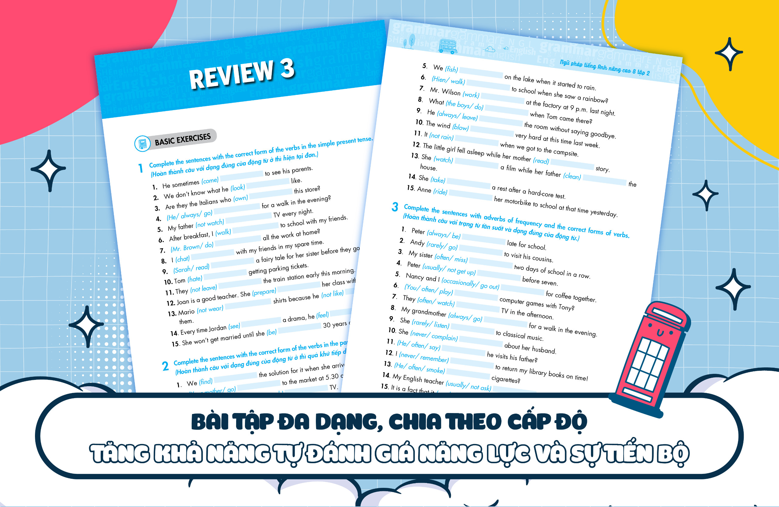 - Bài tập đa dạng và chia cấp độ: Tăng cường khả năng tự đánh giá và rèn luyện từng kỹ năng một cách có hệ thống.