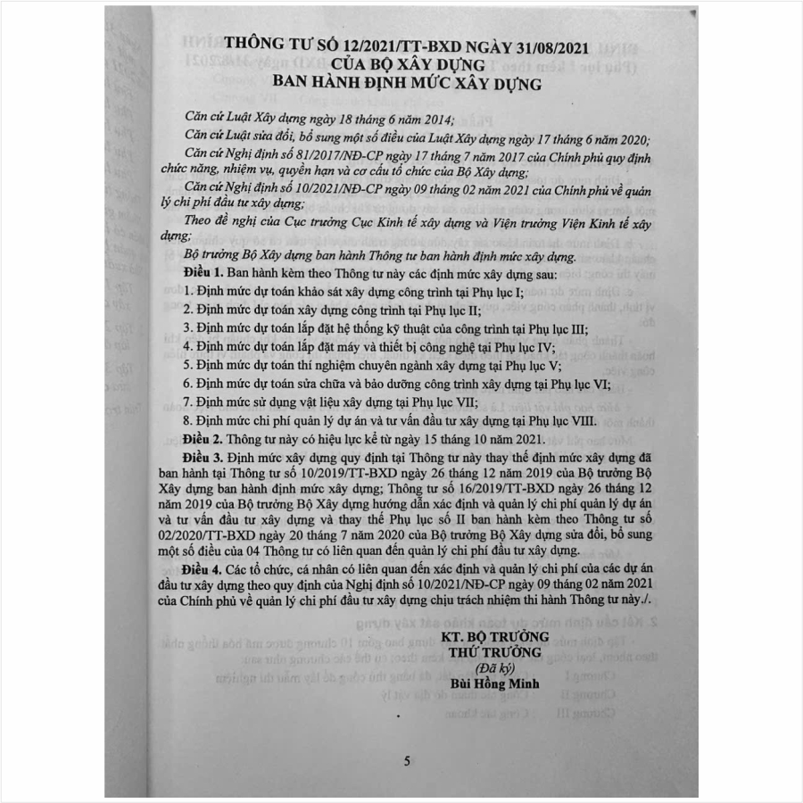 Ngày 30/08/2024 Bộ Xây dựng đã ban hành Thông tư 09/2024/TT-BXD về việc ban hành định mức xây dựng, sửa đổi, bổ sung một số định mức xây dựng ban hành tại Thông tư số 12/2021/TT-BXD ngày 31/8/2021 của Bộ trưởng Bộ Xây dựng