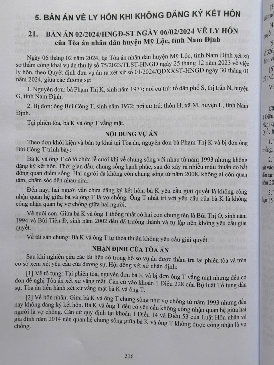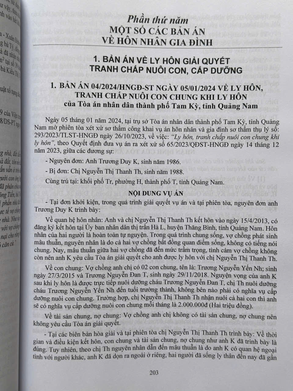 Phần thứ năm. Một số các bản án về hôn nhân gia đình mới nhất