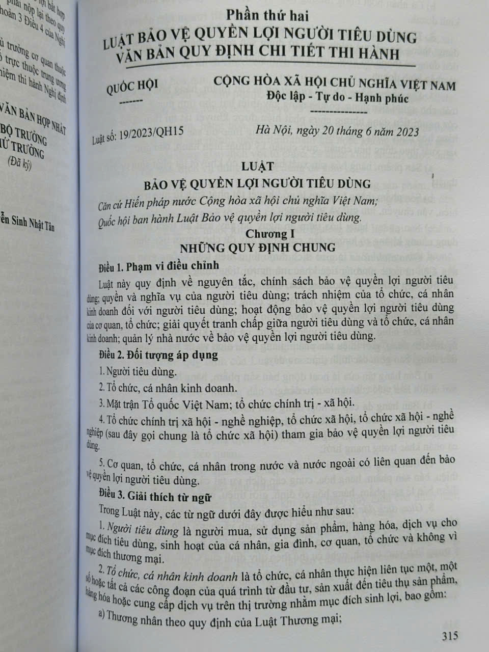 Phần thứ hai. LUẬT BẢO VỆ QUYỀN LỢI NGƯỜI TIÊU DÙNG VÀ VĂN BẢN QUY ĐỊNH CHI TIẾT THI HÀNH