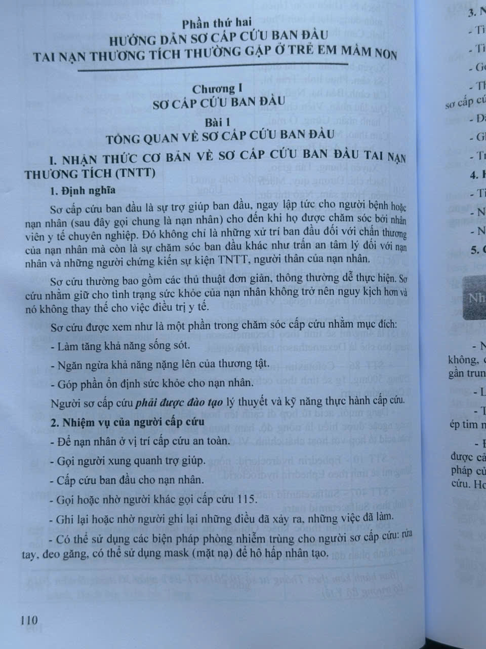 Phần thứ hai. TÀI LIỆU HƯỚNG DẪN SƠ CẤP CỨU BAN ĐẦU TAI NẠN THƯƠNG TÍCH THƯỜNG GẶP Ở TRẺ EM MẦM NON