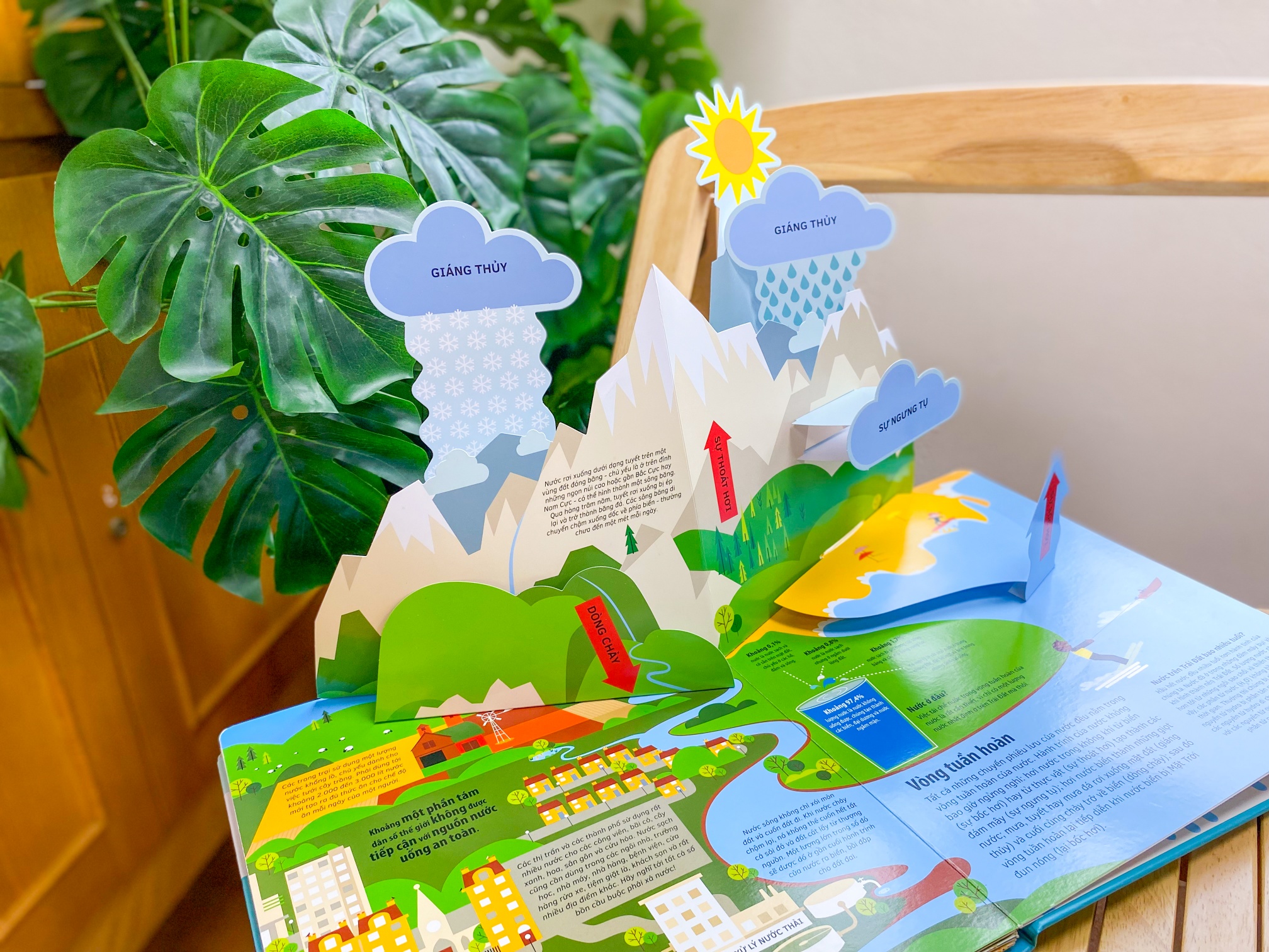 Cuốn “Cuộc phiêu lưu của nước” đưa trẻ khám phá về nước ở khắp mọi nơi, từ bầu trời đến mặt đất, từ trong cơ thể đến ngoài thiên nhiên, từ bề mặt trái đất đến những hệ thống ống ngầm đồ sộ trong lòng đất…