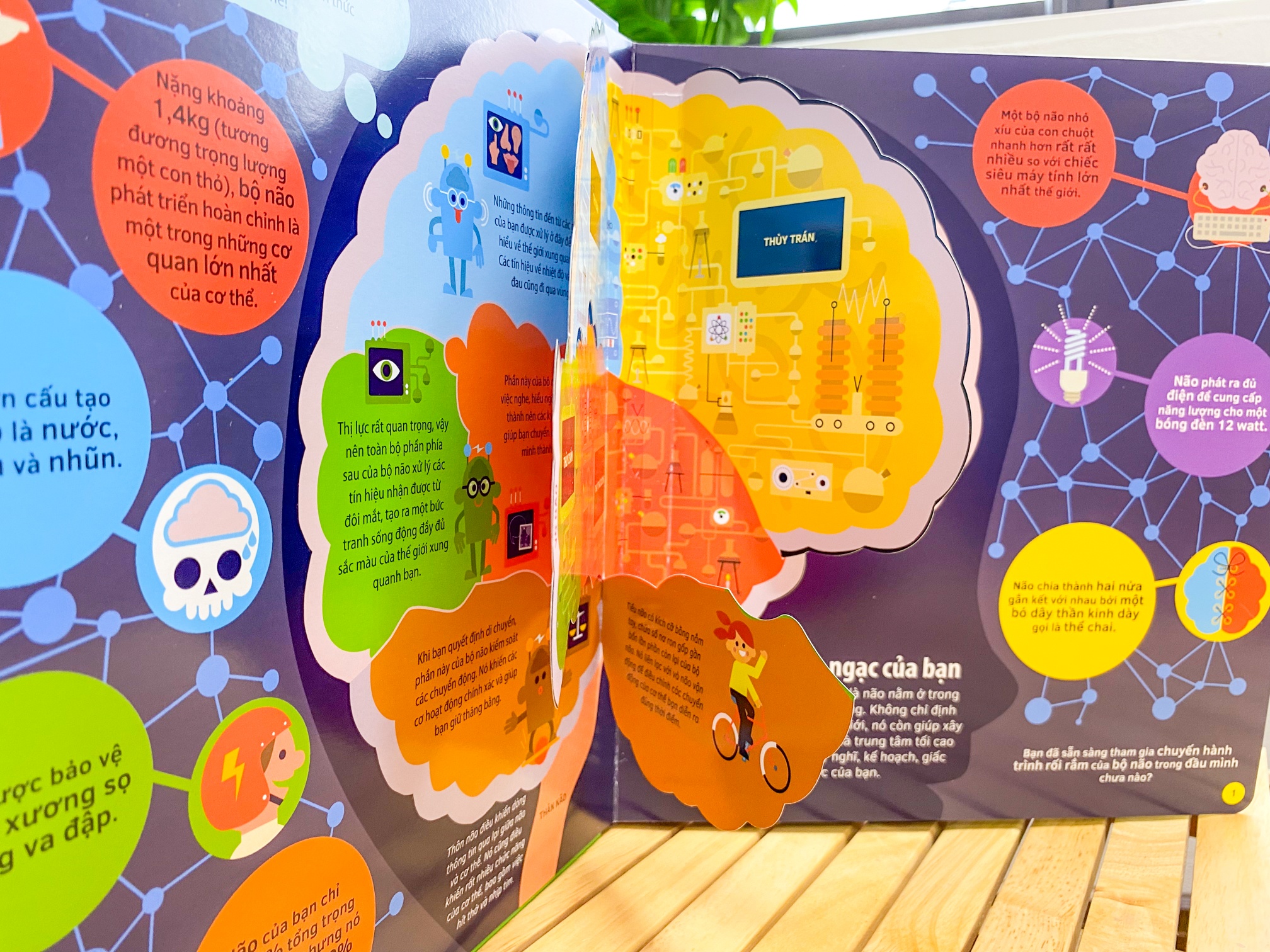 Cuốn “Cuộc phiêu lưu của bộ não” giúp trẻ giải mã một bộ phận phức tạp nhất của cơ thể. Trẻ sẽ được tìm hiểu cấu tạo, chức năng và giải thích tất tần tật những tò mò về não bộ dưới các chi tiết 3D, lật - mở, vòng xoay…đầy thú vị.