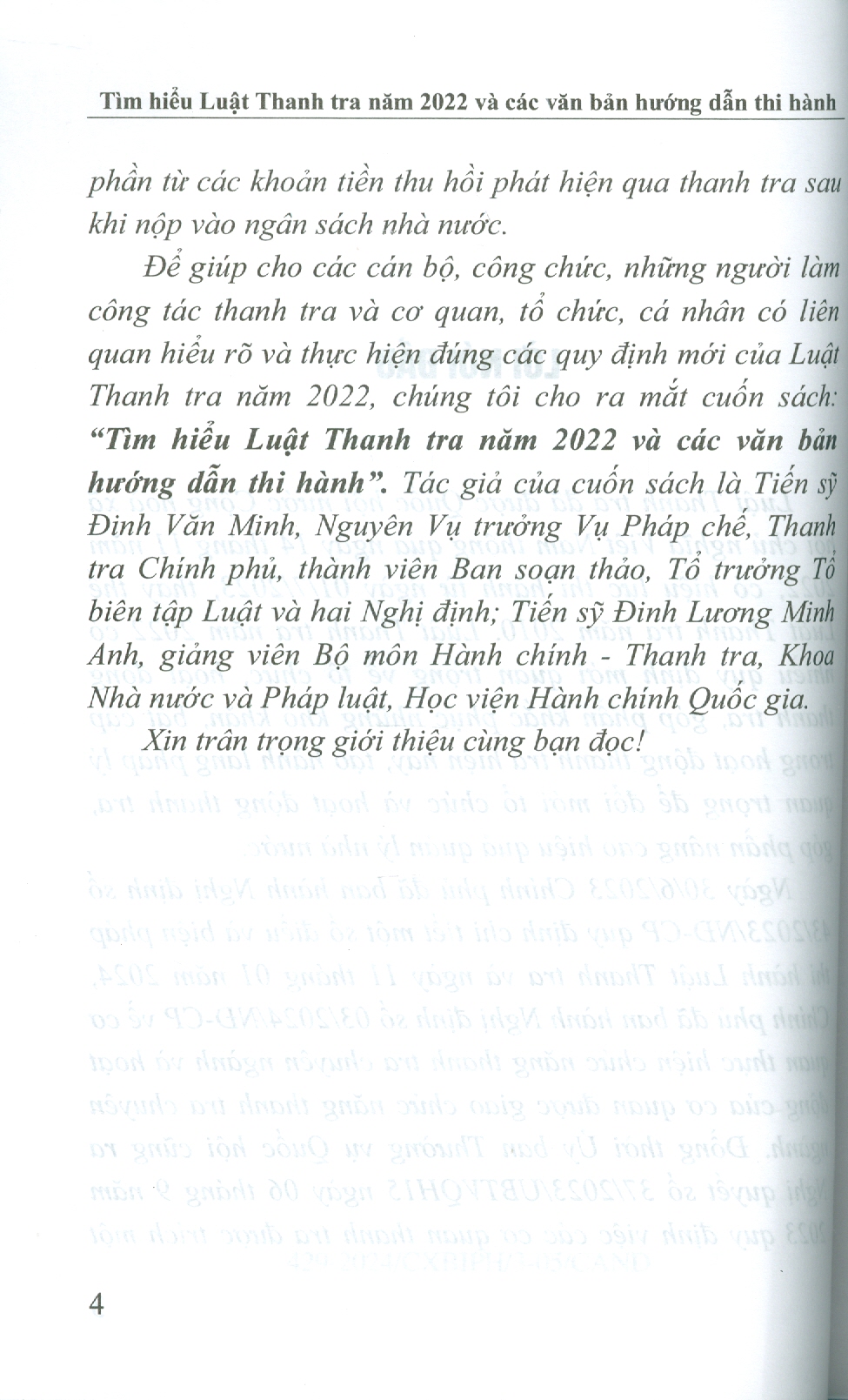 Tìm Hiểu Luật Thanh Tra Năm 2022 Và Các Văn Bản Hướng Dẫn Thi Hành - Ts. Đinh Văn Minh, Ts. Đinh Lương Minh Anh (Nxb Cand)