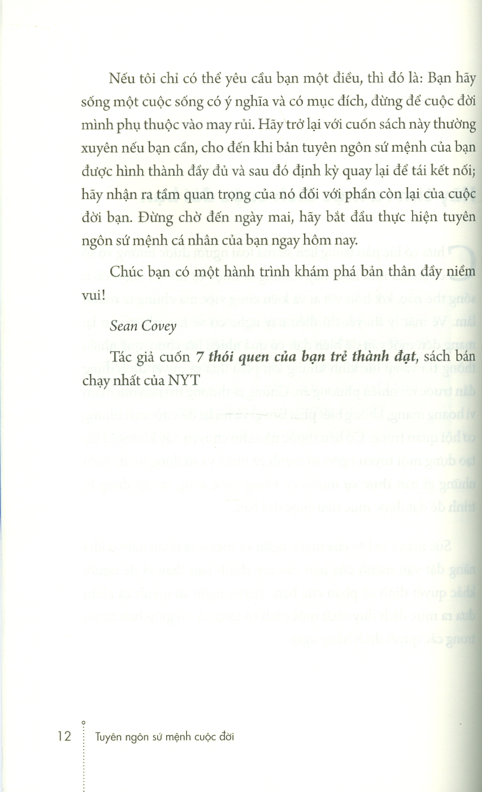 Tuyên Ngôn Sứ Mệnh Cuộc Đời - Hành Trình Tìm Mục Đích, Chọn Mục Tiêu Và Đạt Ước Mơ - Stephen R. Covey; Trần Anh Khôi Dịch