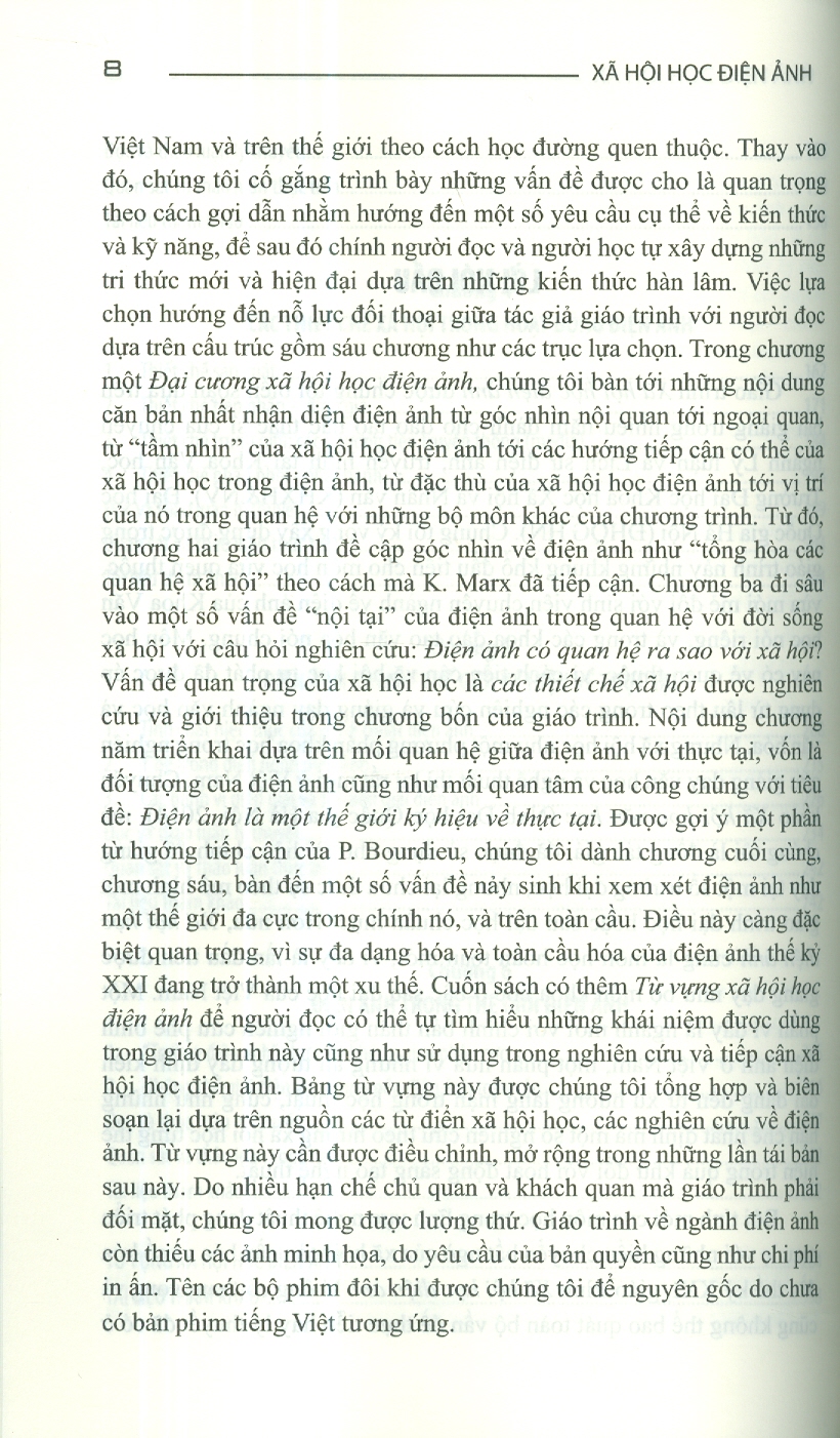 Đặc điểm: Cuốn sách được biên soạn như một tài liệu chuyên khảo và giáo trình cho bậc đào tạo Thạc sĩ chuyên ngành Lý luận và Lịch sử điện ảnh, truyền hình. Nội dung: Sách gồm 6 chương, tập trung kiến giải điện ảnh dưới góc độ các hiện tượng xã...