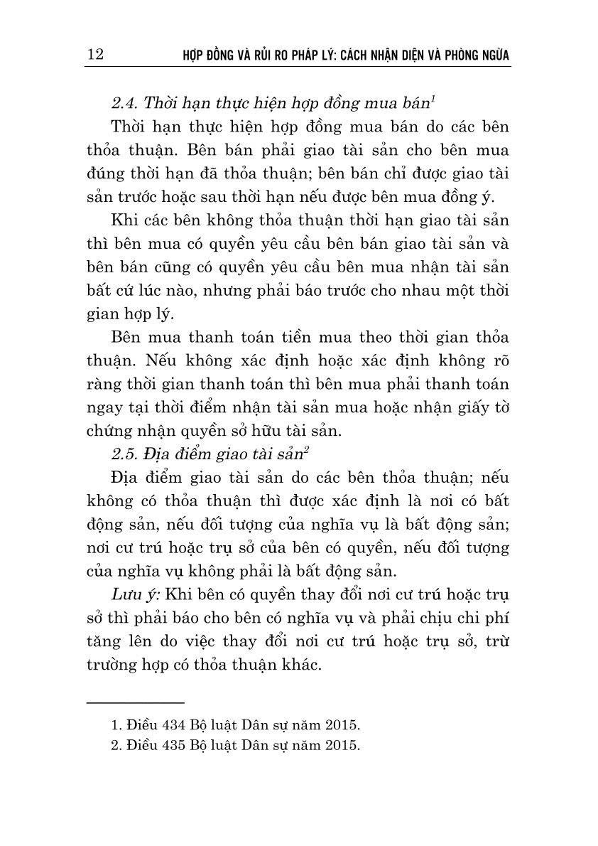 Nhằm giúp bạn đọc có được các thông tin hữu ích về vấn đề trên, Nhà xuất bản Chính trị quốc gia Sự thật xuất bản cuốn sách Hợp đồng và rủi ro pháp lý: Cách nhận diện và phòng ngừa, do Luật sư Trương Ngọc Liêu biên soạn. Cuốn sách trình bày những quy định về các loại hợp đồng thông dụng (hợp đồng mua bán, tặng cho, vay mượn, ủy quyền tài sản,...), các loại hợp đồng đặc thù (hợp đồng liên quan đến bất động sản, bảo hiểm); phân tích và làm rõ những rủi ro phát sinh thường gặp, đưa ra một số biện pháp kiểm soát, phòng ngừa rủi ro khi soạn thảo, ký kết hợp đồng.