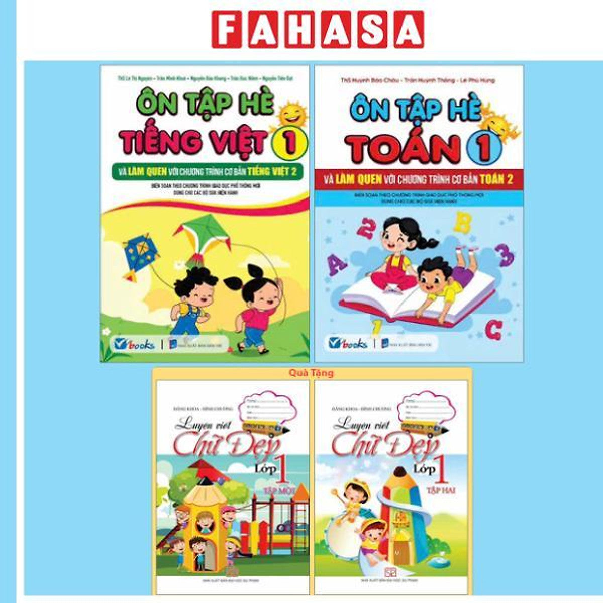 Sách - Bộ Sách Ôn Tập Hè Tiếng Việt 1 + Ôn Tập Hè Toán 1 (Bộ 2 Cuốn) - Tặng Kèm Sách Luyện Viết Chữ Đẹp Lớp 1 - Tập 1 + Tập 2