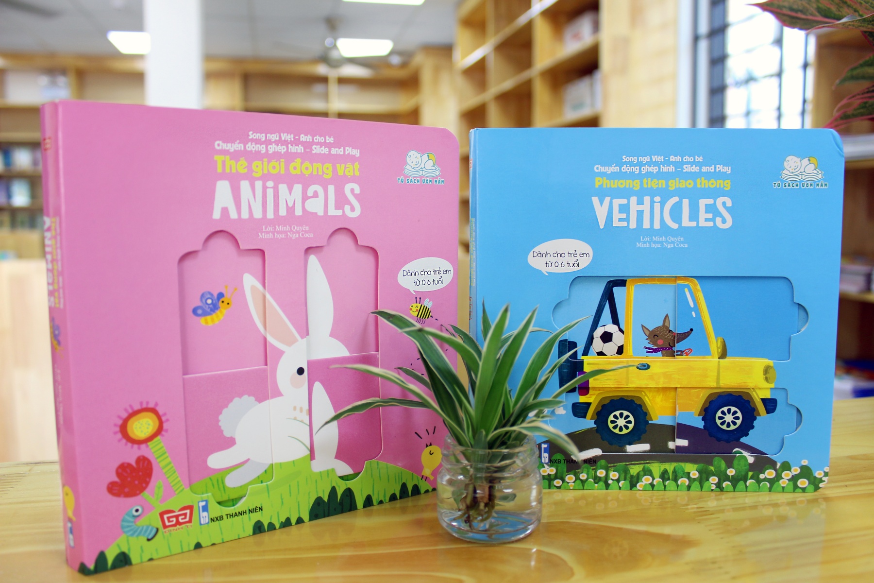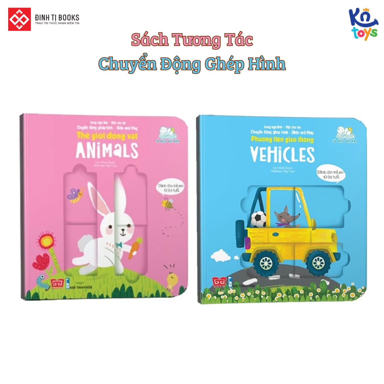 ➞ Đi theo nguyên lý tuyệt vời của trò chơi ghép hình và tương tác “chuyển động” (Bộ sách “Chuyển động thông minh đa ngữ Việt - Anh - Pháp, 31 chủ đề, NXB Nathan), ekip Đinh Tị đã sáng tác, thiết kế và xuất bản bộ sách đa tương tác thông minh “Slide&Play - Chuyển động&Ghép hình” bắt đầu với 2 chủ đề gần gũi: Thế giới động vật & Phương tiện giao thông dành riêng cho trẻ 0-6 tuổi.