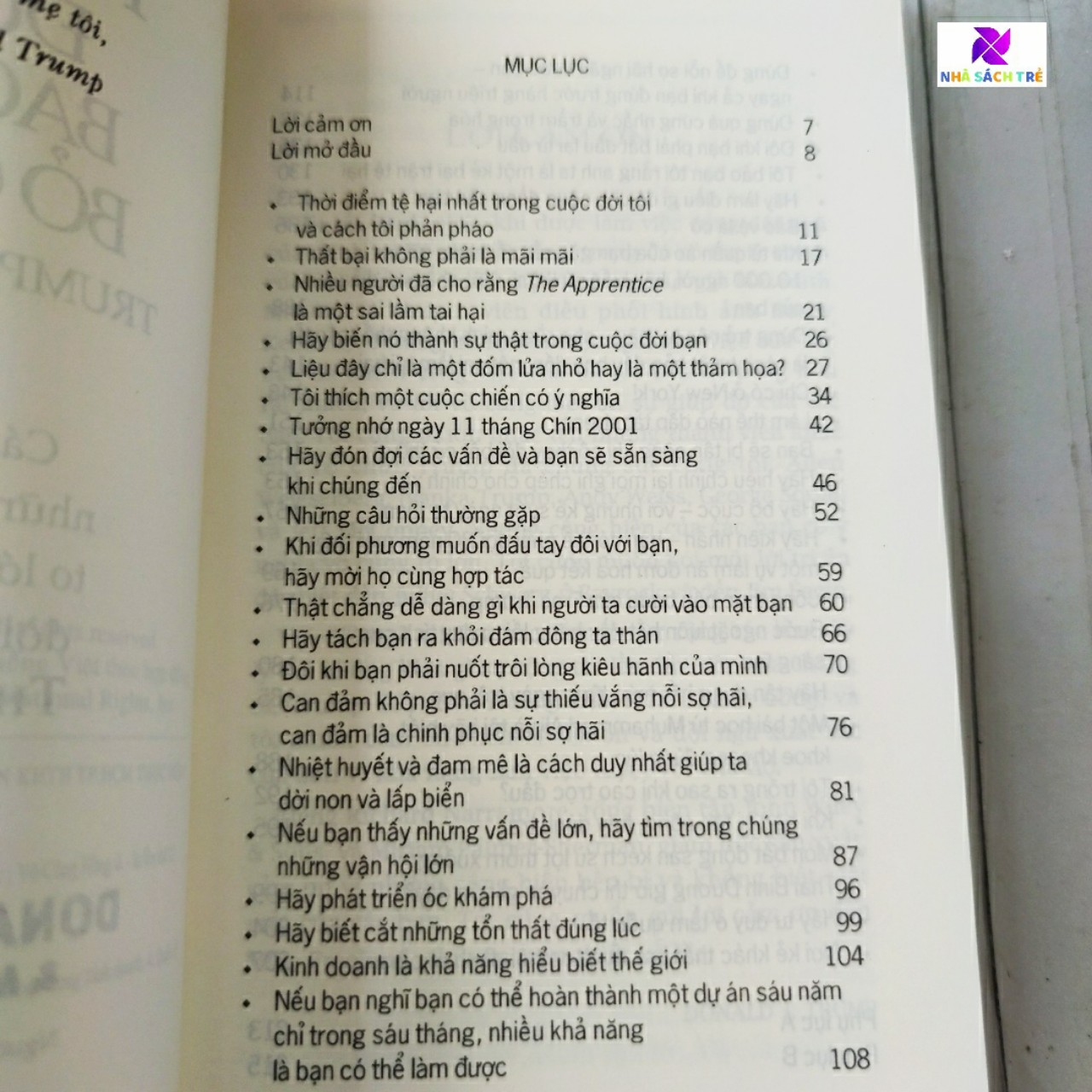 Trump - doanh nhân nổi tiếng nhất thế giới này thẳng thắn giãi bày những thách thức to lớn nhất, những giây phút tệ hại nhất, và những cuộc chiến khốc liệt nhất - và cách ông biến những nghịch cảnh đó thành các thành công mới.