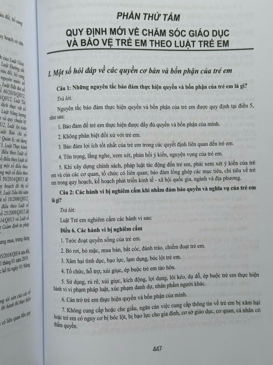 Phần thứ tám. Quy định mới về chăm sóc giáo dục và bảo vệ trẻ em theo Luật Trẻ em