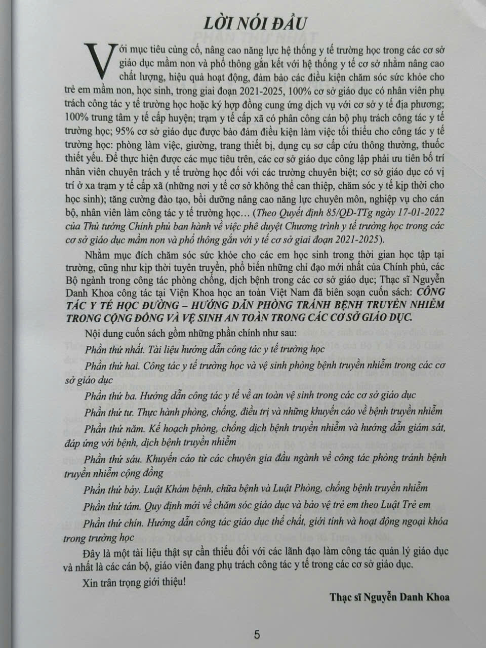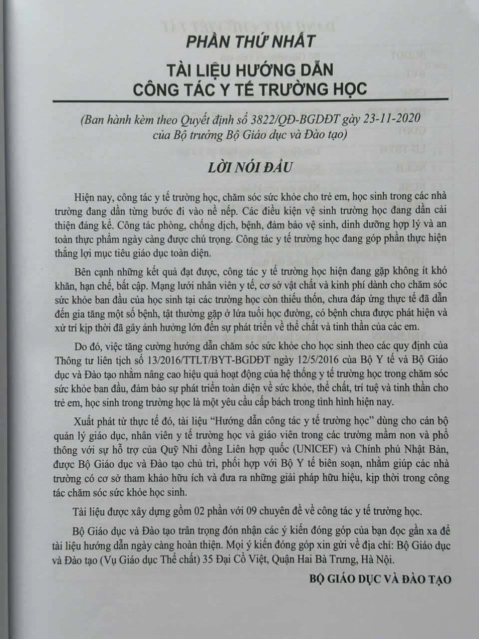 Đây là một tài liệu thật sự cần thiếu đối với các lãnh đạo làm công tác quản lý giáo dục và nhất là các cán bộ, giáo viên đang phụ trách công tác y tế trong các cơ sở giáo dục.