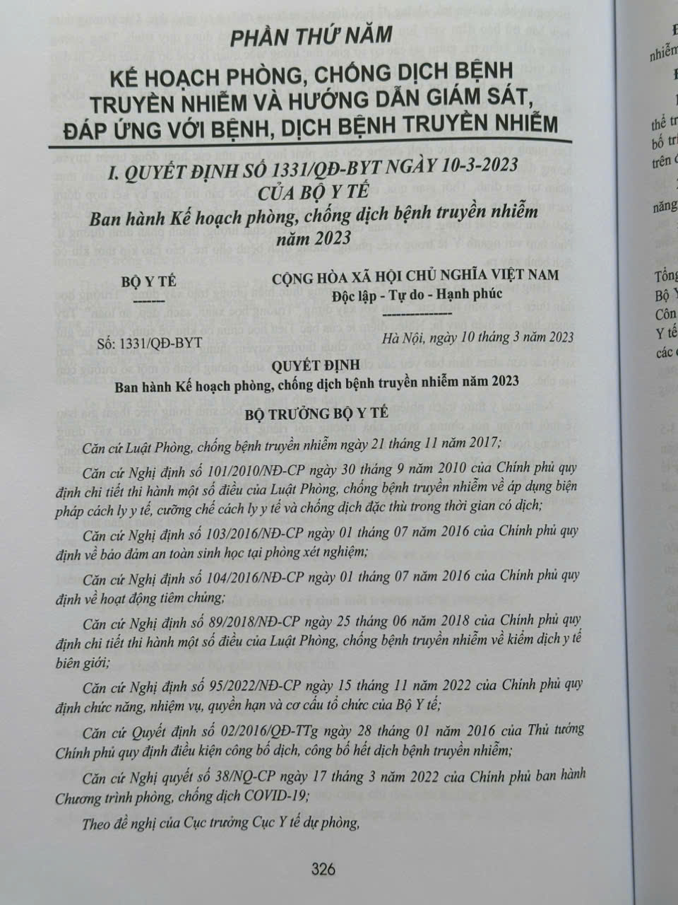 Phần thứ năm. Kế hoạch phòng, chống dịch bệnh truyền nhiễm và hướng dẫn giám sát, đáp ứng với bệnh, dịch bệnh truyền nhiễm