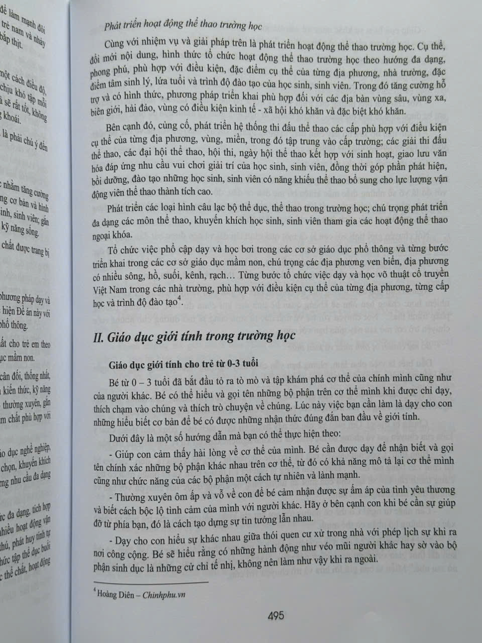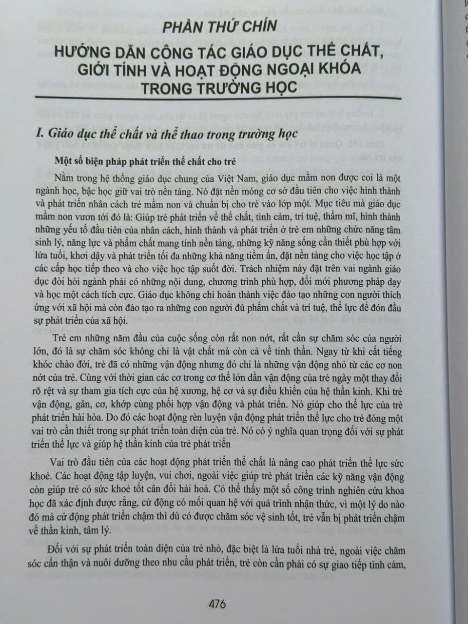 Phần thứ chín. Hướng dẫn công tác giáo dục thể chất, giới tính và hoạt động ngoại khóa trong trường học