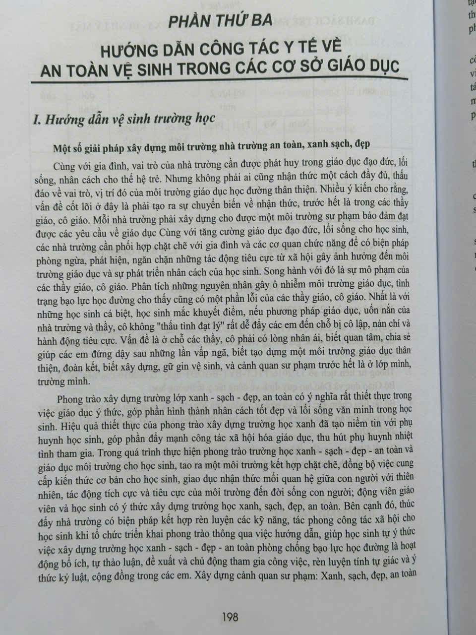 Phần thứ ba. Hướng dẫn công tác y tế về an toàn vệ sinh trong các cơ sở giáo dục