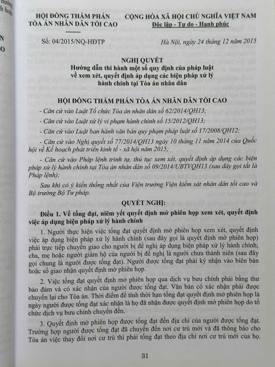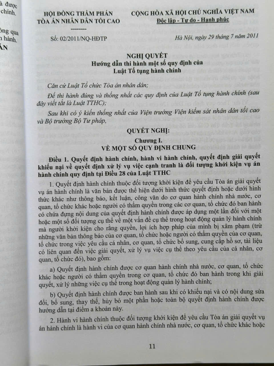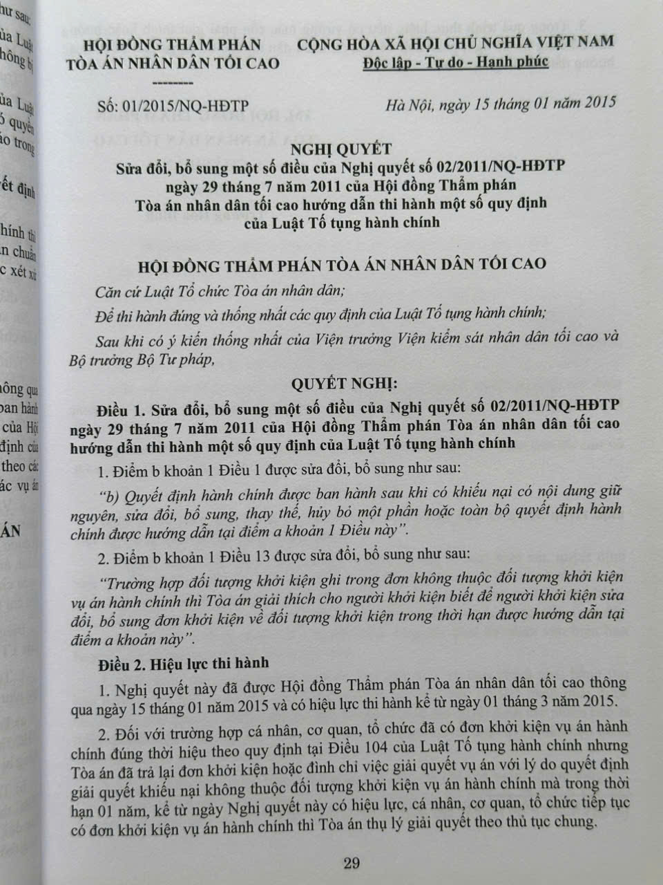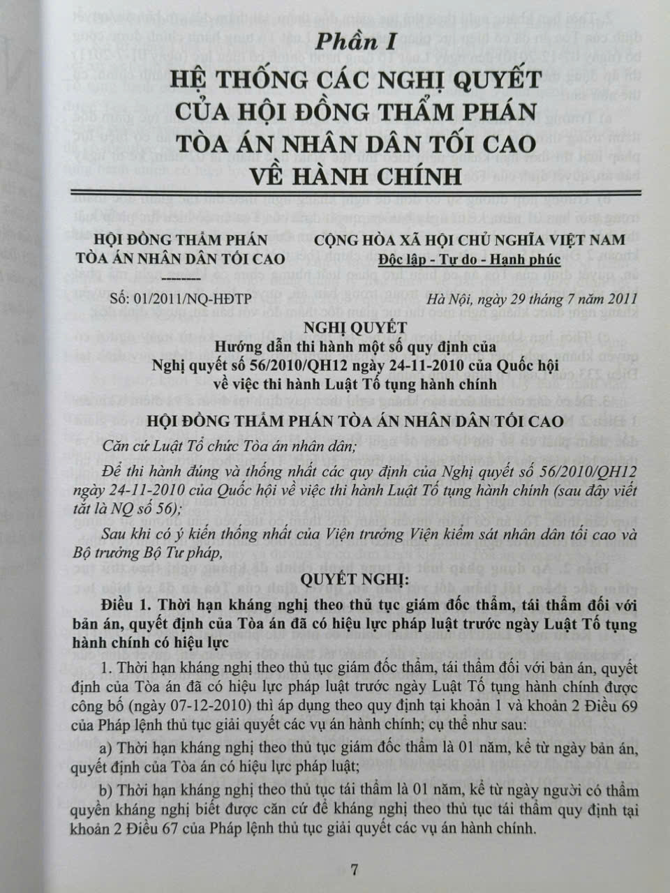 Phần thứ nhất. Hệ thống các Nghị quyết của Hội đồng Thẩm phán Tòa án nhân dân tối cao về hành chính