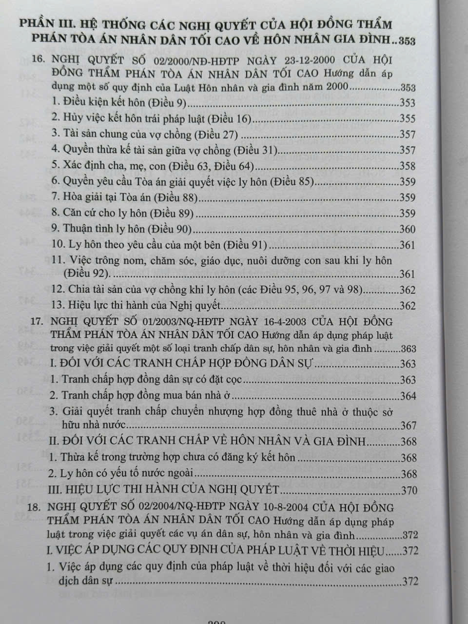Phần thứ ba. Hệ thống các Nghị quyết của Hội đồng Thẩm phán Tòa án nhân dân tối cao về hôn nhân gia đình