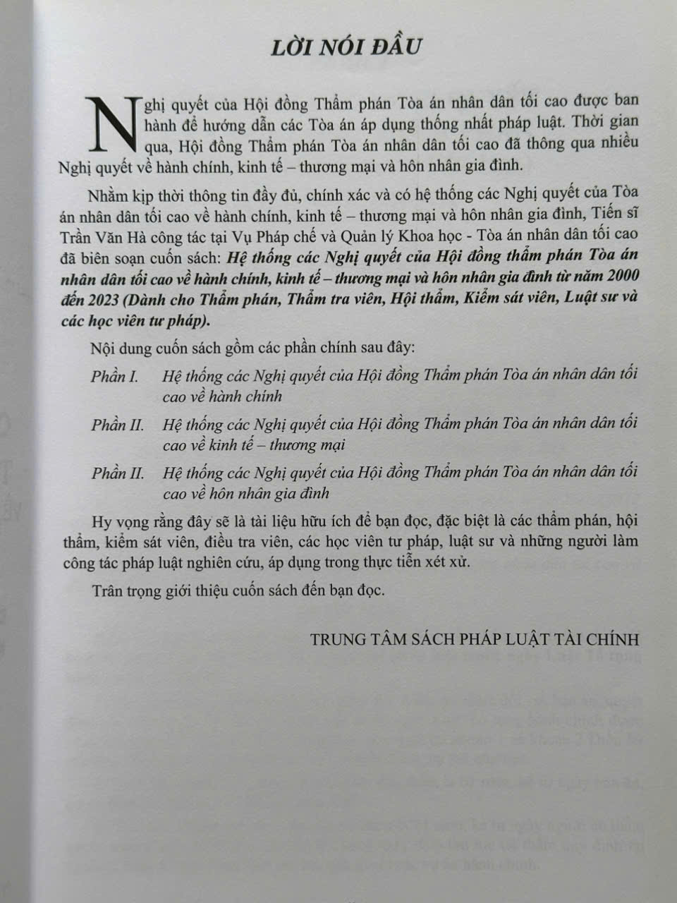 Sách Hệ Thống Các Nghị Quyết Của Hội Đồng Thẩm Phán, Tòa Án Nhân Dân Tối Cao Về Hành Chính, Kinh Tế – Thương Mại Và Hôn Nhân Gia Đình Từ Năm 2000 Đến 2023 (Dành Cho Thẩm Phán, Thẩm Tra Viên, Hội Thẩm, Kiểm Soát Viên, Luật Sư Và Các Học viên Tư Pháp)