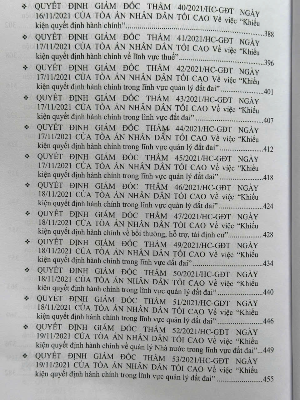 Phần thứ ba: Các Quyết định giám đốc thẩm của tòa án nhân dân tối cao về hành chính