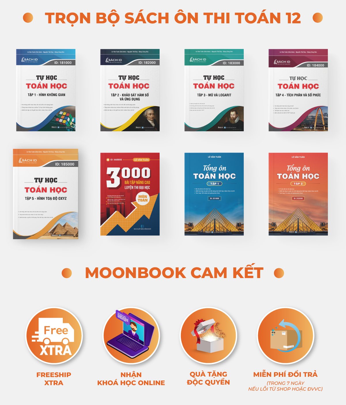 - Hỗ trợ mọi vấn đề liên quan đến sách và đổi trả hàng miễn phí nếu sách lỗi/ thiếu ID.