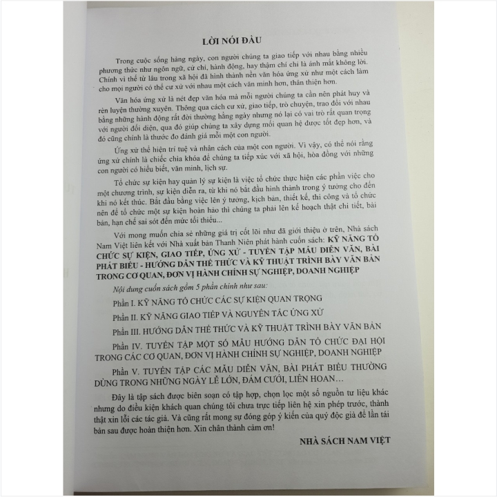 Nhà sách Nam Việt – Namvietbook xin trân trọng giới thiệu sách Kỹ Năng Tổ Chức Sự Kiện Giao Tiếp Ứng Xử - Tuyển Tập Mẫu Diễn Văn Bài Phát Biểu - Hướng Dẫn Thể Thức và Kỹ Thuật Trình Bày Văn Bản Trong Cơ Quan, Đơn Vị HCSN, Doanh...