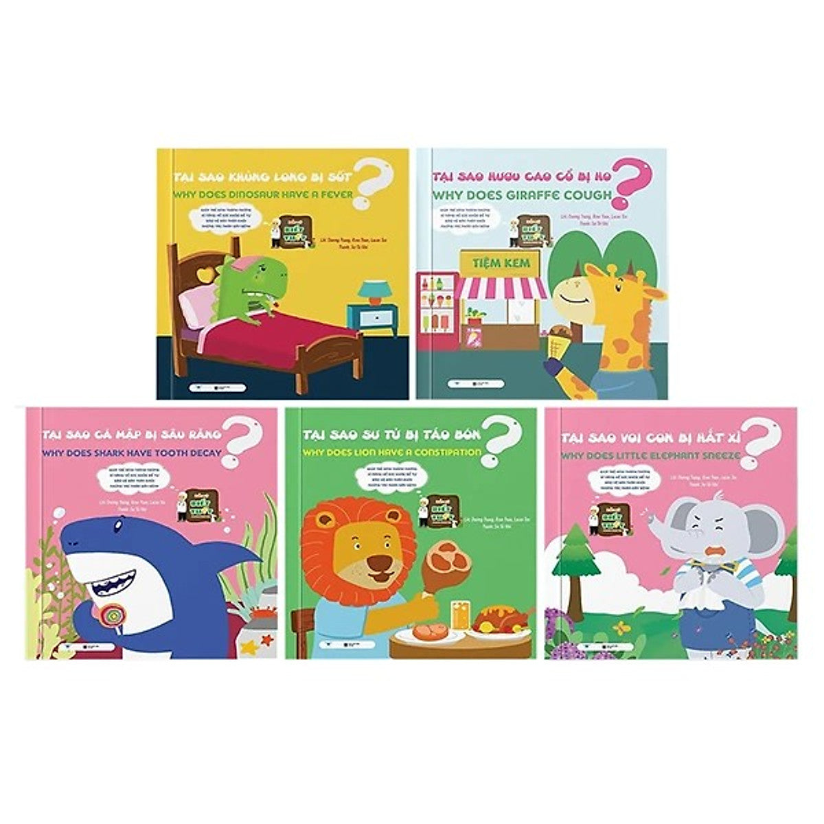Bộ Sách Bác Sĩ Biết Tuốt - Song Ngữ Việt-Anh (Bộ 5 Cuốn) Trọn bộ 5 quyển song ngữ với nội dung ý nghĩa, chất tới từng câu chữ: Quyển 1: Tại sao Khủng Long bị sốt??? Quyển 2: Tại sao Hươu Cao Cổ bị ho??? Quyển 3: Tại sao...
