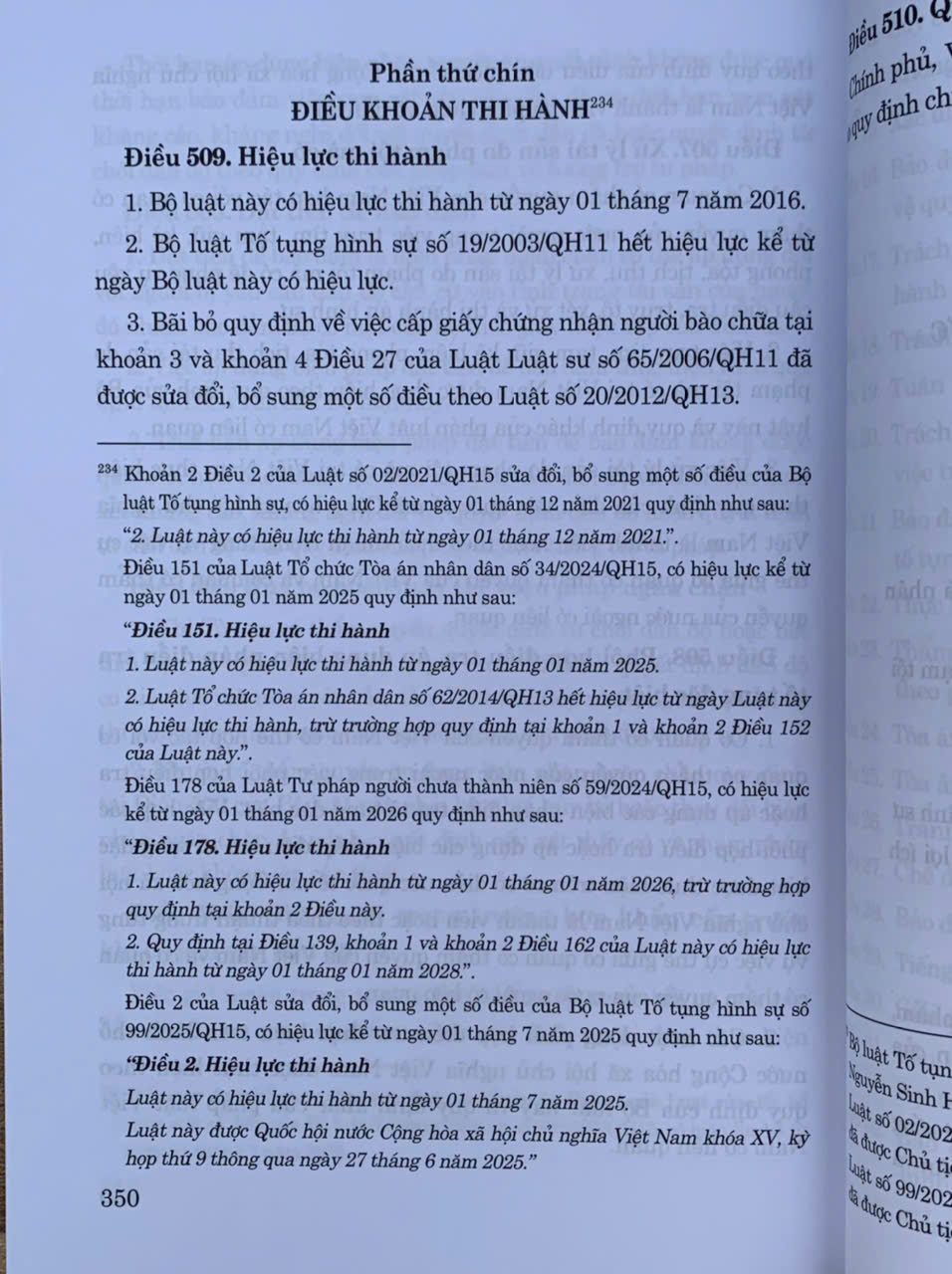 Bộ luật Tố tụng hình sự số 101/2015/QH13 ngày 27 tháng 11 năm 2015 của Quốc hội, có hiệu lực kể từ ngày 01 tháng 7 năm 2016, được sửa đổi, bổ sung bởi:
