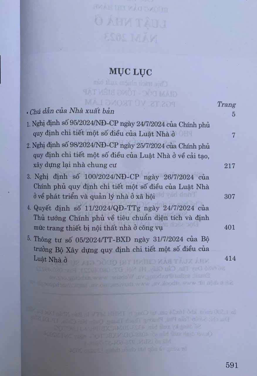 Sách- Các văn bản hướng dẫn thi hành Luật Nhà ở năm 2023 Nhà xuất bản: Chính trị quốc gia Sự thậtTác giả: Quốc HộiNăm xuất bản: 2.2025Số trang: 592Khổ sách: 16x24cmGiá bìa: 234.000 đCông ty phát hành: Nhà xuất bản Chính trị quốc gia Sự thật Luật Nhà ở...
