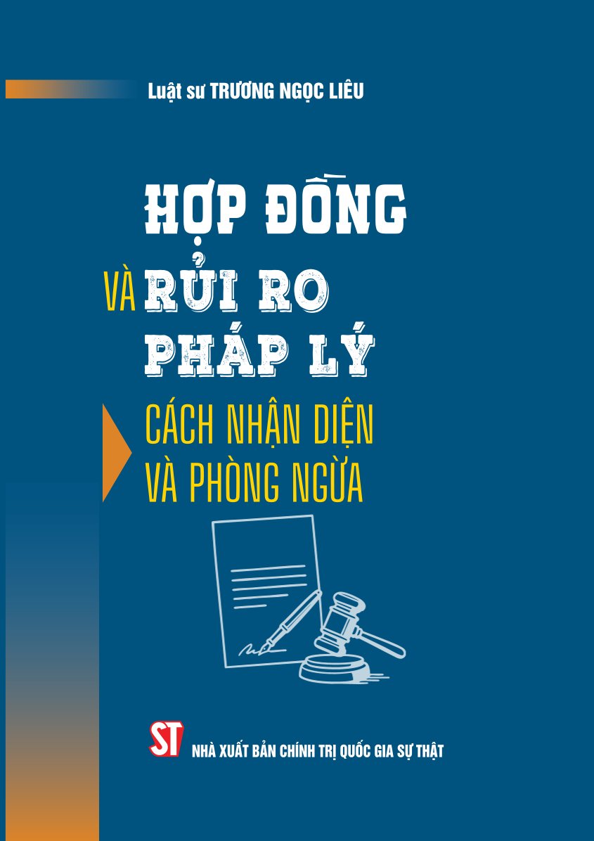 Nhằm giúp bạn đọc có được các thông tin hữu ích về vấn đề trên, Nhà xuất bản Chính trị quốc gia Sự thật xuất bản cuốn sách Hợp đồng và rủi ro pháp lý: Cách nhận diện và phòng ngừa, do Luật sư Trương Ngọc Liêu biên soạn. Cuốn sách trình bày những quy định về các loại hợp đồng thông dụng (hợp đồng mua bán, tặng cho, vay mượn, ủy quyền tài sản,...), các loại hợp đồng đặc thù (hợp đồng liên quan đến bất động sản, bảo hiểm); phân tích và làm rõ những rủi ro phát sinh thường gặp, đưa ra một số biện pháp kiểm soát, phòng ngừa rủi ro khi soạn thảo, ký kết hợp đồng.