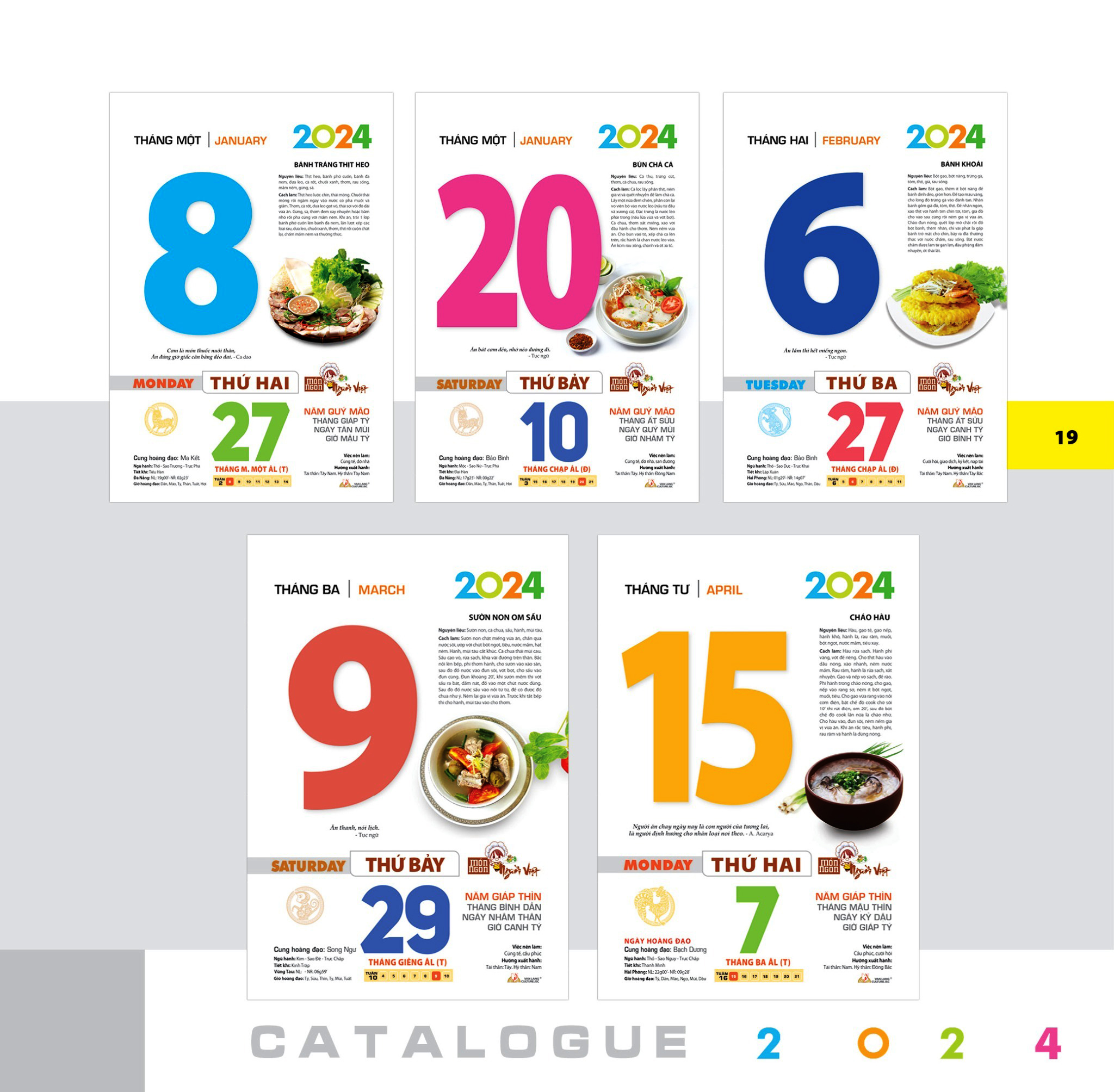 Các món ăn, thức uống trong bộ lịch rất phong phú, gồm các món Việt Nam