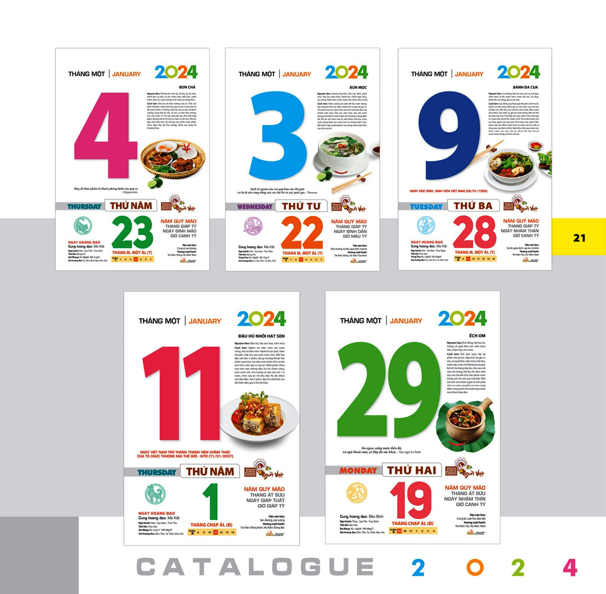 Các món ăn, thức uống trong bộ lịch rất phong phú. Thưởng thức món ăn ngon, thức uống bổ dưỡng và tốt cho sức khỏe là lựa chọn khoa học trong chăm sóc bản thân và gia đình.