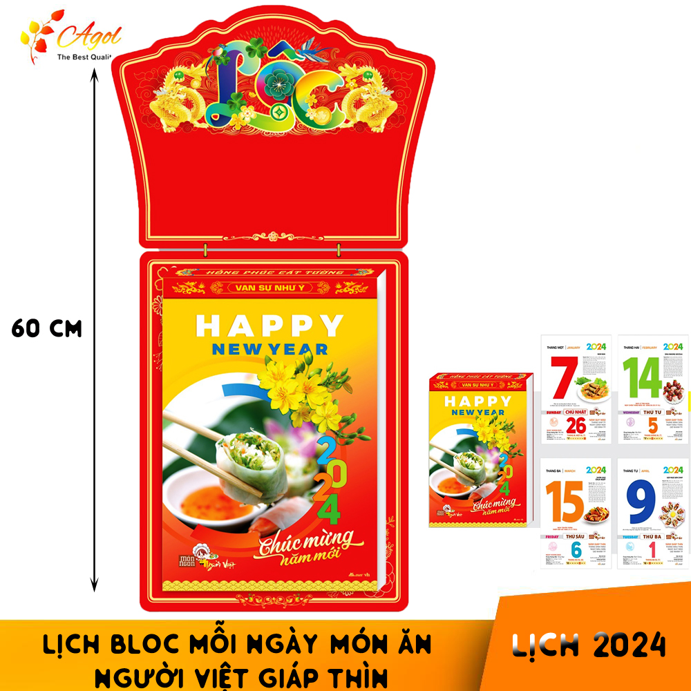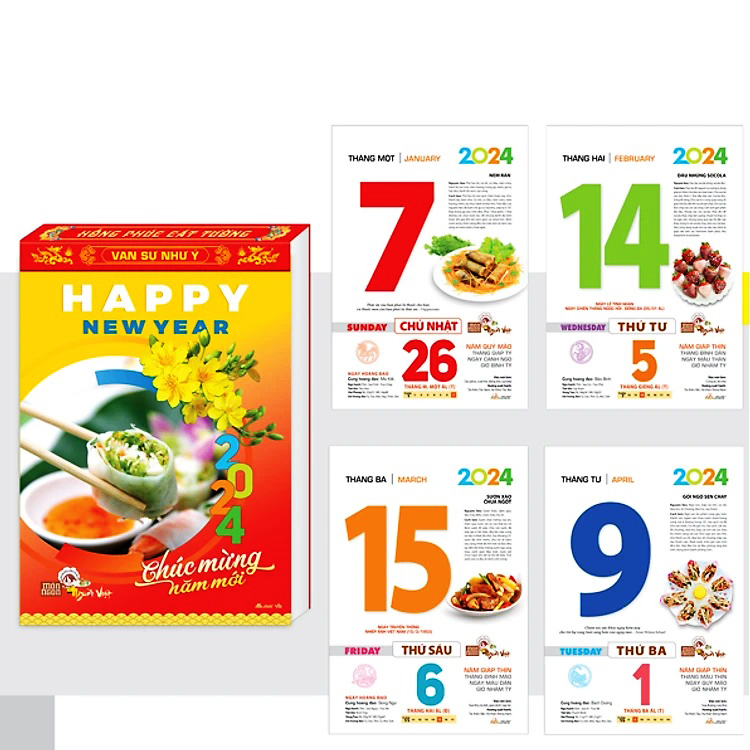 Lịch Bloc Mỗi Ngày Món Ăn Dinh Dưỡng 2024 Món Ngon Người Việt Kích Thước Khổ Lịch 20*30 Lịch Giáp Thìn