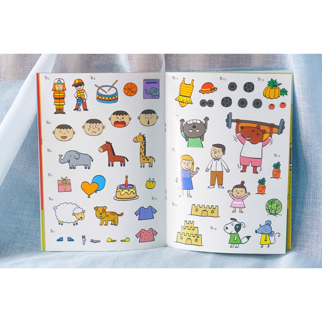 Những hình ảnh, nhãn dán trong sách không chỉ để trẻ thỏa sức sáng tạo mà còn khuyến khích sự tương tác giữa hình ảnh và ngôn ngữ. Trẻ sẽ học cách mô tả, nhận biết và liên kết đồ vật bằng từ ngữ, phát triển khả năng thể hiện bản thân một cách có ý thức và tự tin giao tiếp.