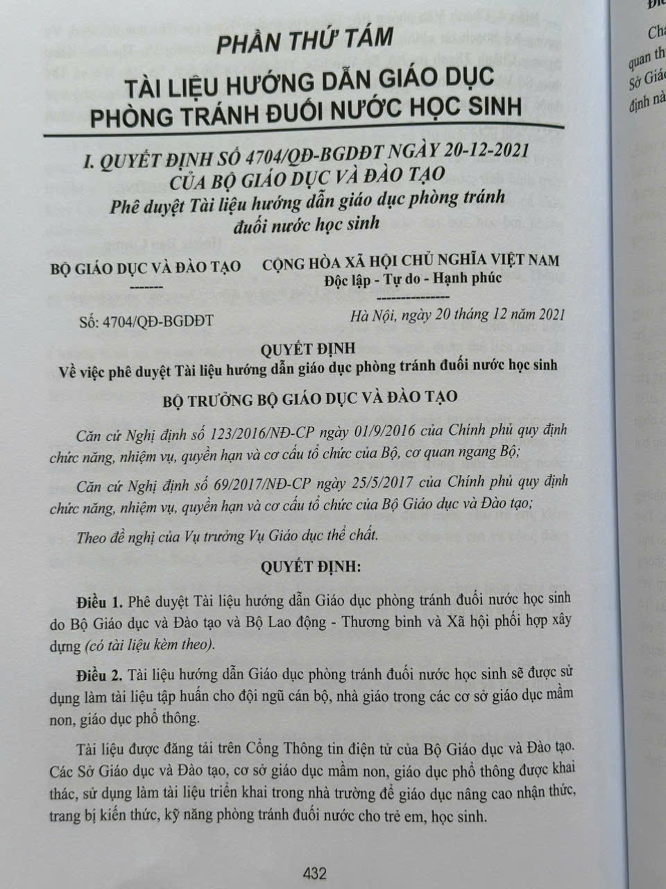 Phần thứ tám. Tài liệu hướng dẫn giáo dục phòng tránh đuối nước học sinh