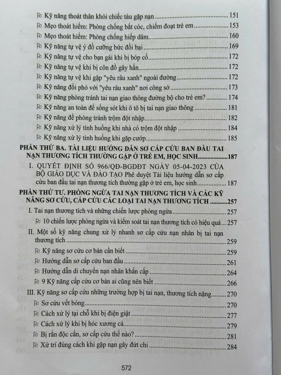 Phần thứ tư. Phòng ngừa tai nạn thương tích và các kỹ năng sơ cứu, cấp cứu các loại tai nạn thương tích