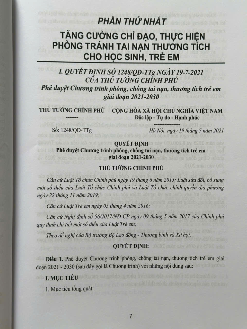 Phần thứ nhất. Tăng cường chỉ đạo, thực hiện phòng tránh tai nạn thương tích cho học sinh, trẻ em