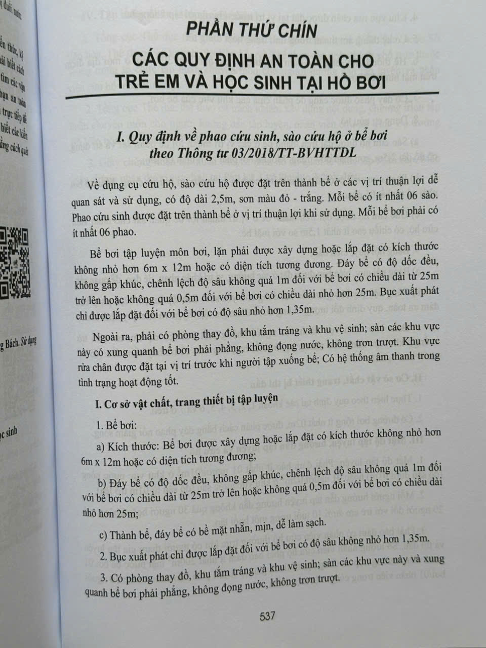 Phần thứ chín. Các quy định an toàn cho trẻ em và học sinh tại hồ bơi