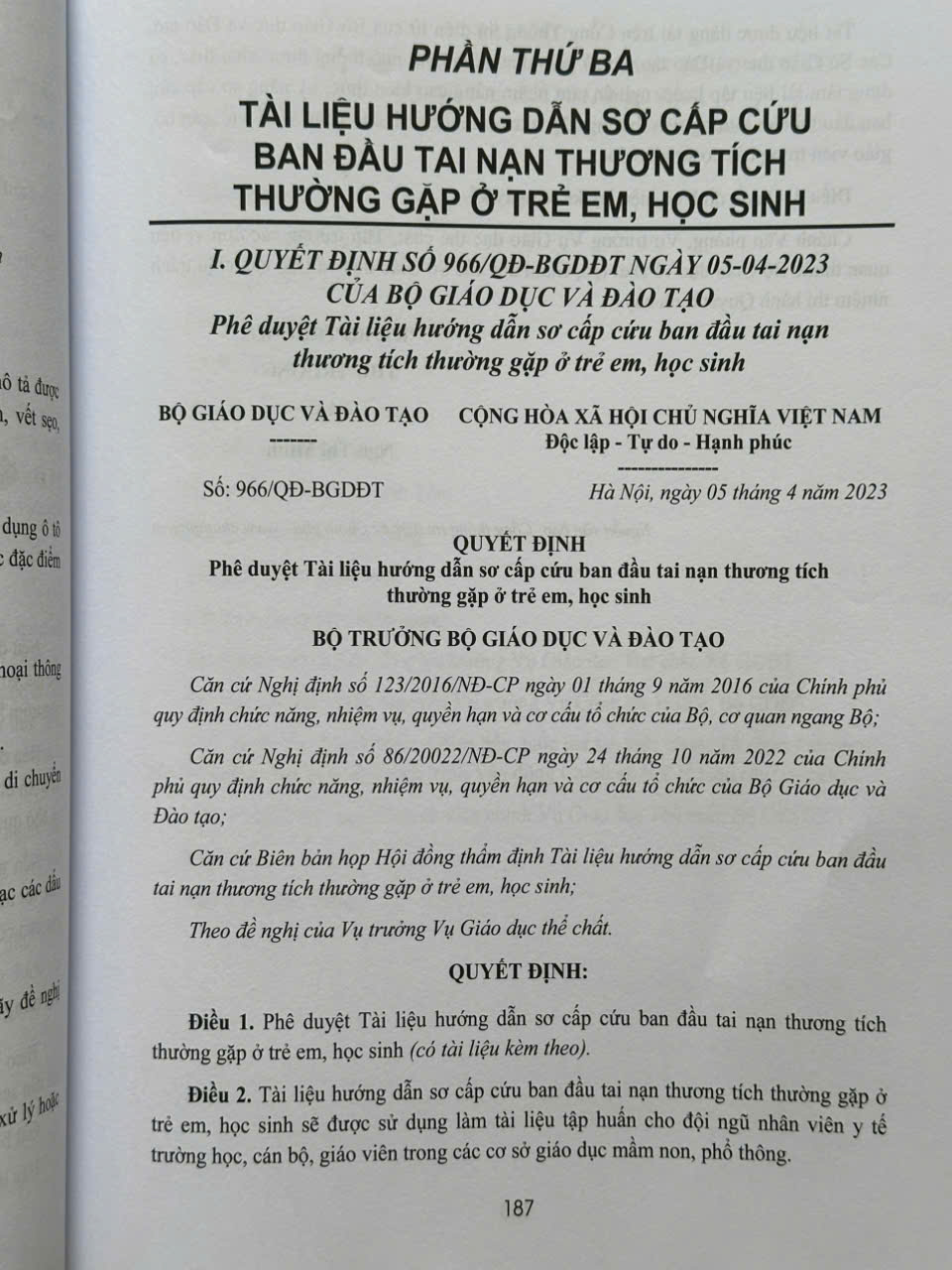 Phần thứ ba. Tài liệu hướng dẫn sơ cấp cứu ban đầu tai nạn thương tích thường gặp ở trẻ em, học sinh