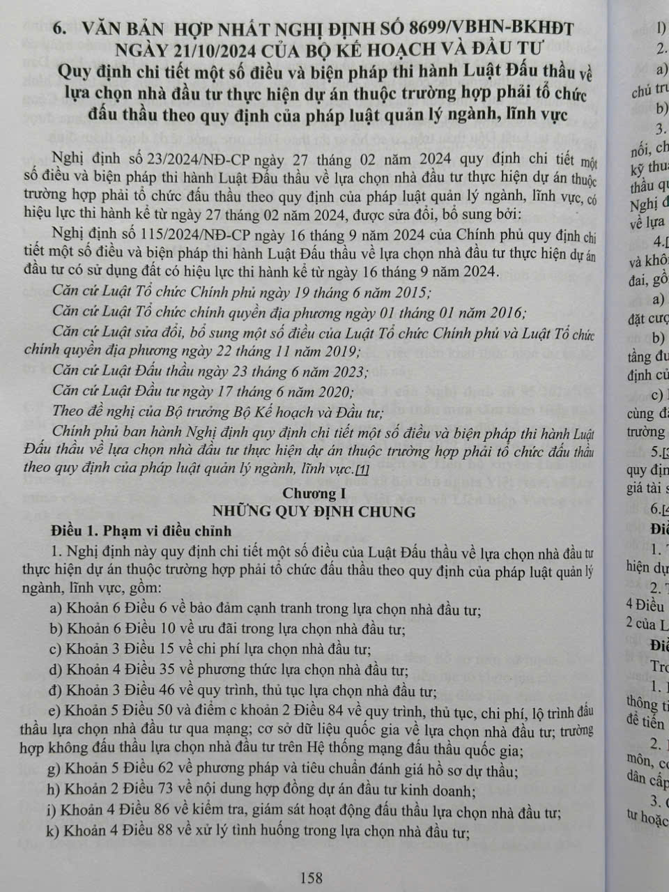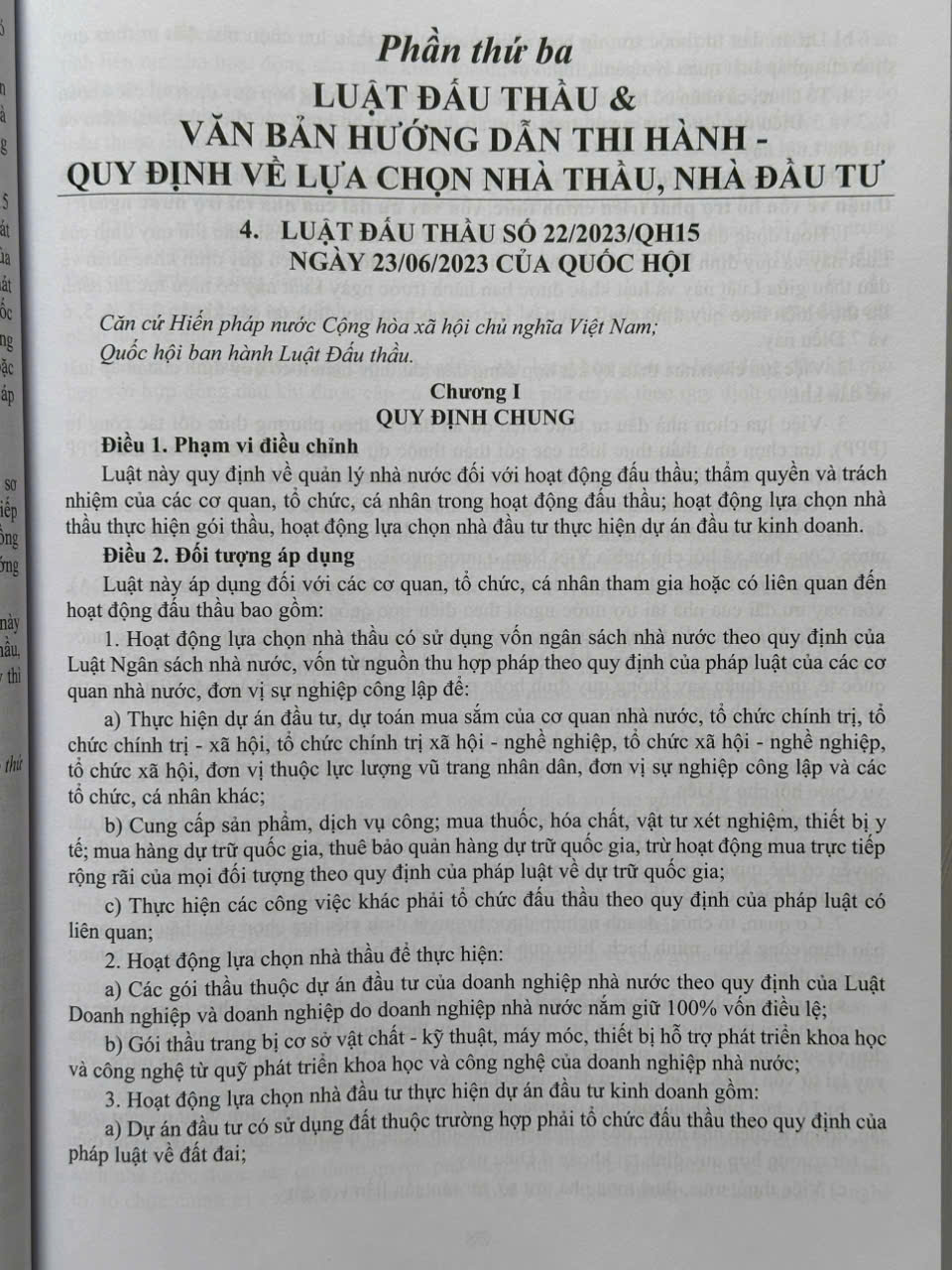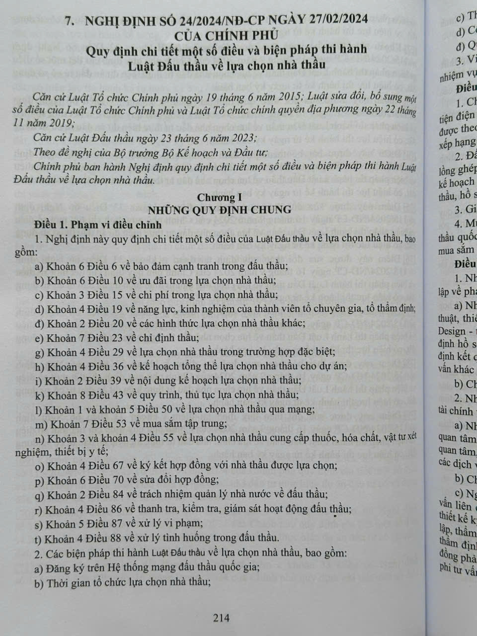 Ngày 23/06/2023 Luật Đấu thầu số 22/2023/QH15 được Quốc hội thông qua. Luật có hiệu lực thi hành từ 01/01/2024. Sau đó Chính phủ, Bộ Kế hoạch và đầu tư cũng đã ban hành nhiều quy định chi tiết hướng dẫn thi hành Luật Đấu thầu và các quy định mới về lựa chọn nhà thầu, nhà đầu tư như: