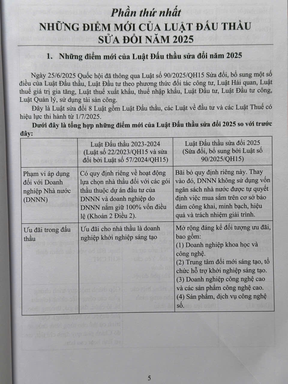 Phần thứ nhất. Những điểm mới của Luật Đấu thầu sửa đổi năm 2025