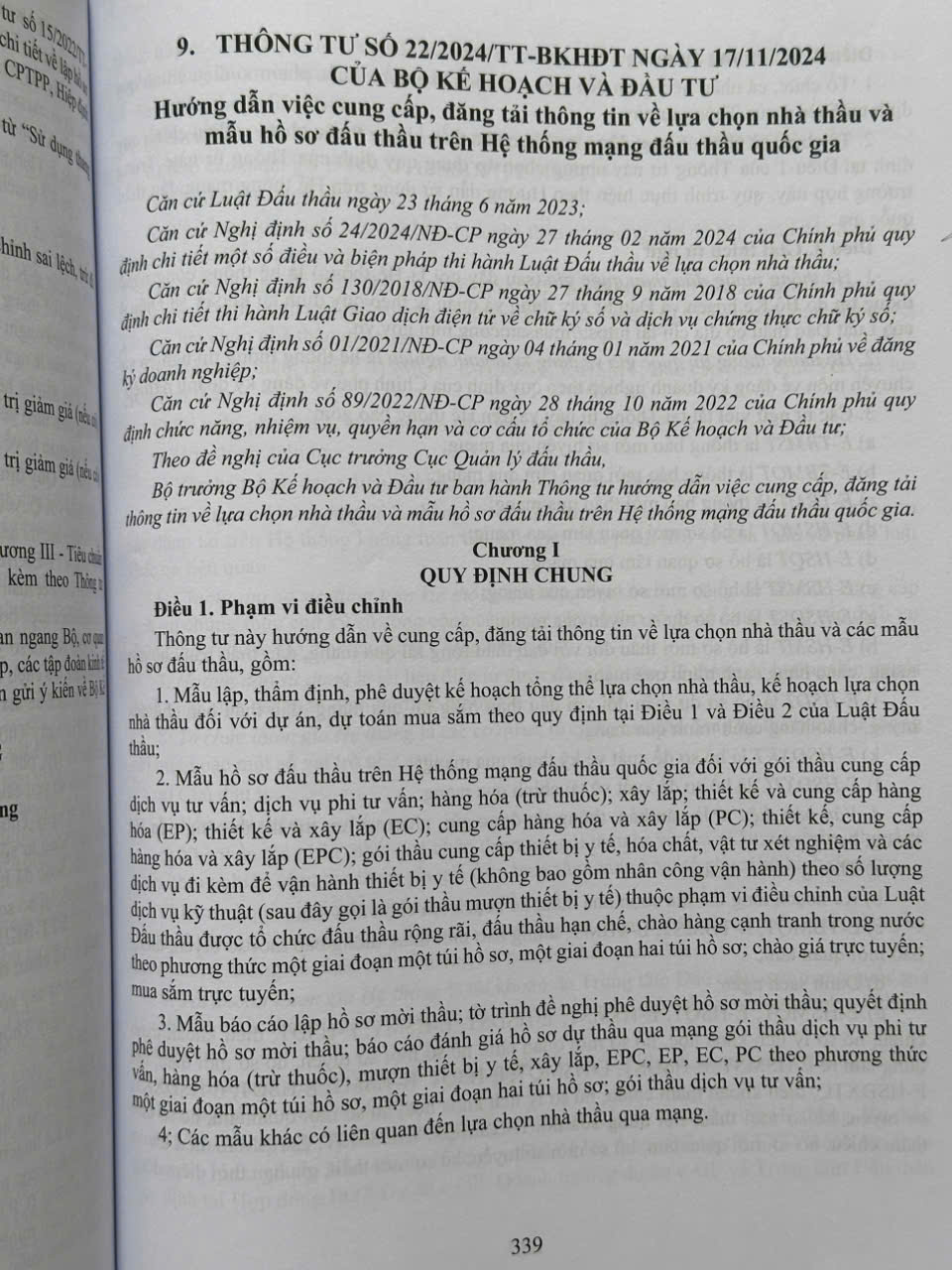 Thông tư số 22/2024/TT-BKHĐT ngày 17/11/2024 hướng dẫn việc cung cấp, đăng tải thông tin về lựa chọn nhà thầu và mẫu hồ sơ đấu thầu trên hệ thống mạng đấu thầu quốc gia…