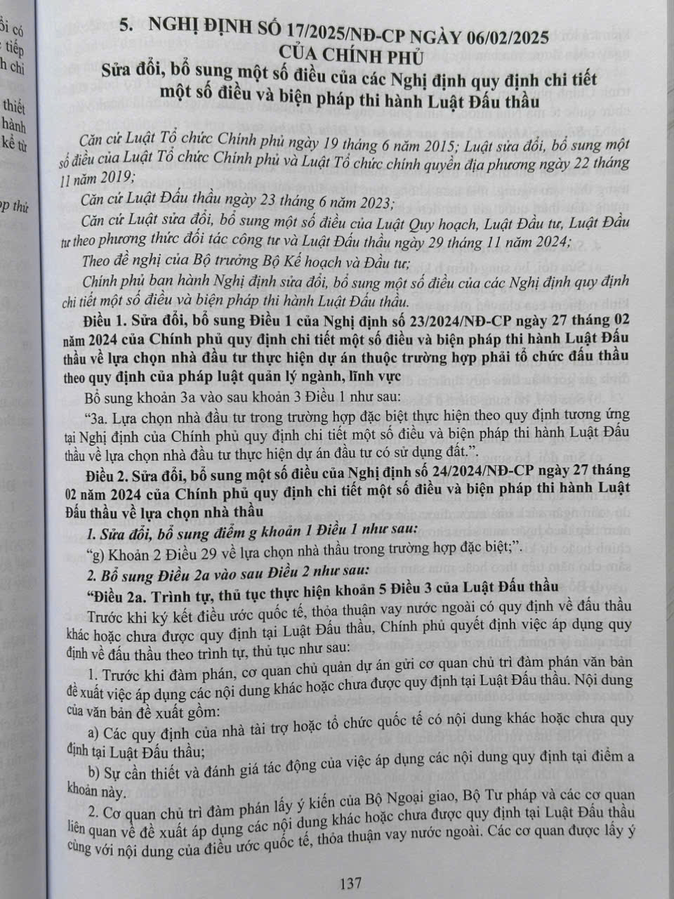 – Nghị định số 17/2025/NĐ-CP ngày 06/02/2025 sửa đổi, bổ sung một số điều của các Nghị định quy định chi tiết một số điều và biện pháp thi hành Luật Đấu thầu,