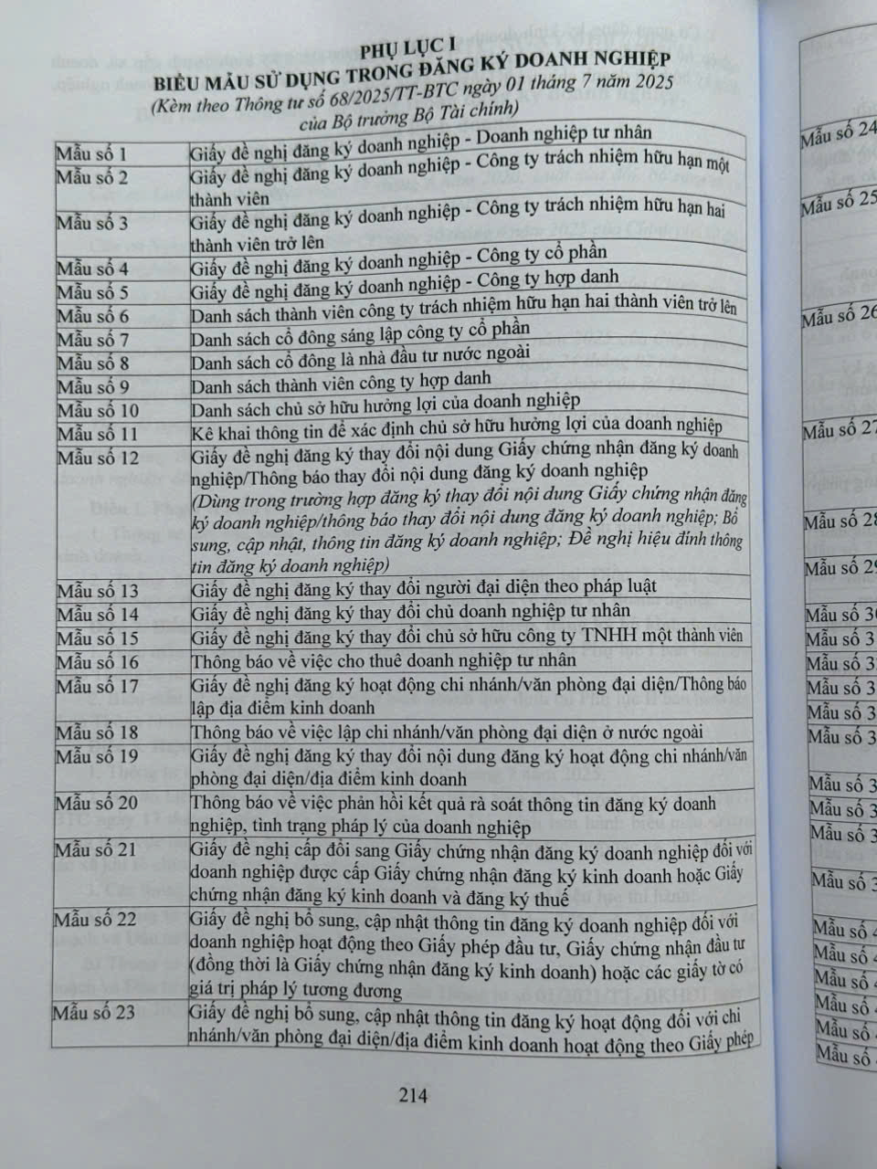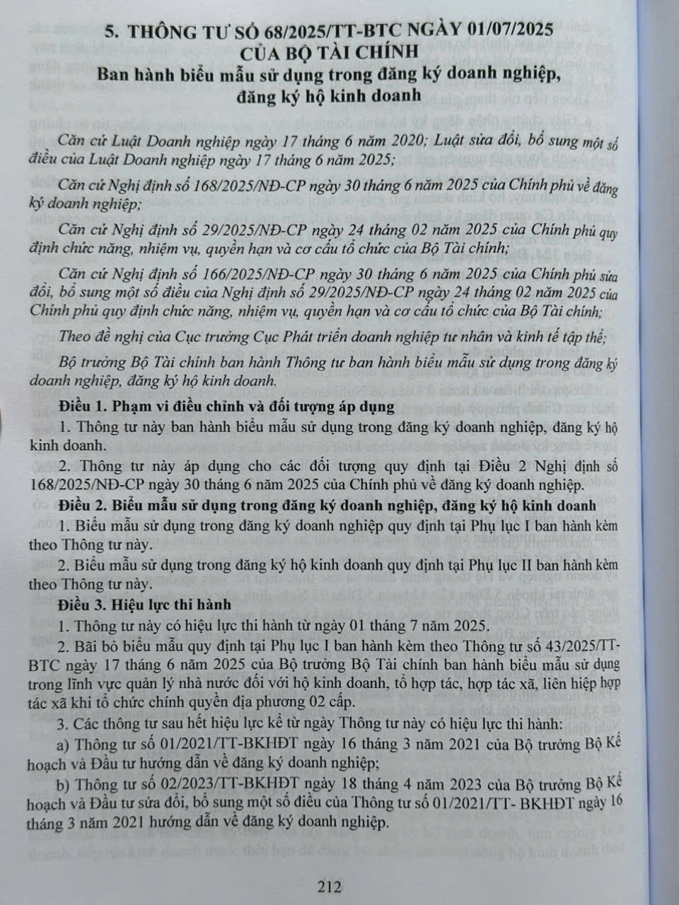 – Thông tư 68/2025/TT-BTC ngày 01/07/2025 về biểu mẫu sử dụng trong đăng ký doanh nghiệp, đăng ký hộ kinh doanh…